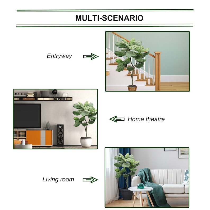 4' Faux Silk Fiddle Leaf Fig Tree - Lifelike Artificial Indoor Plant Decor