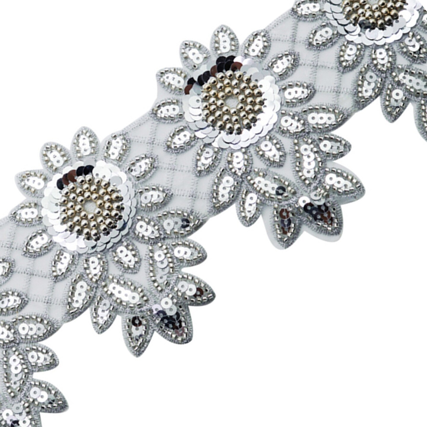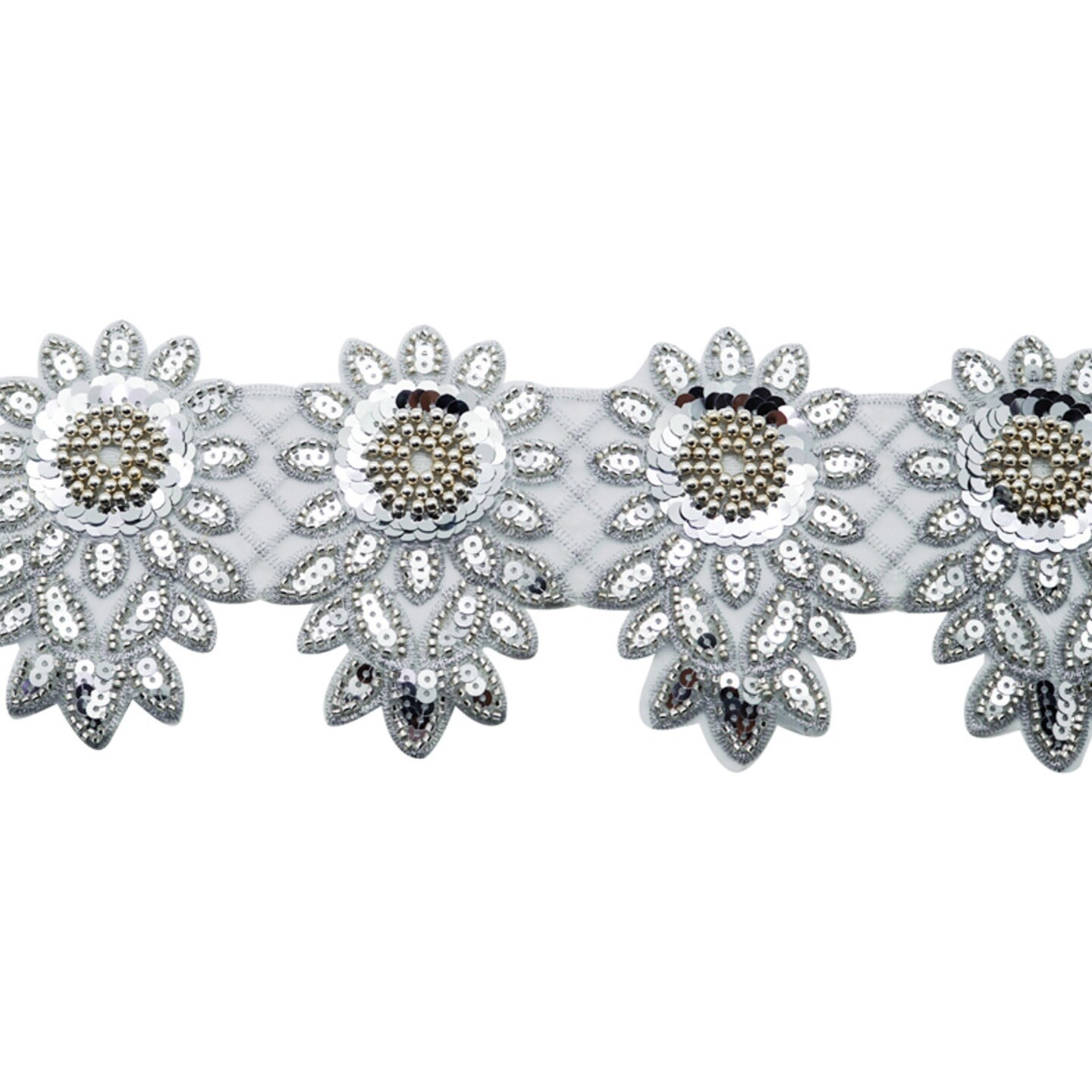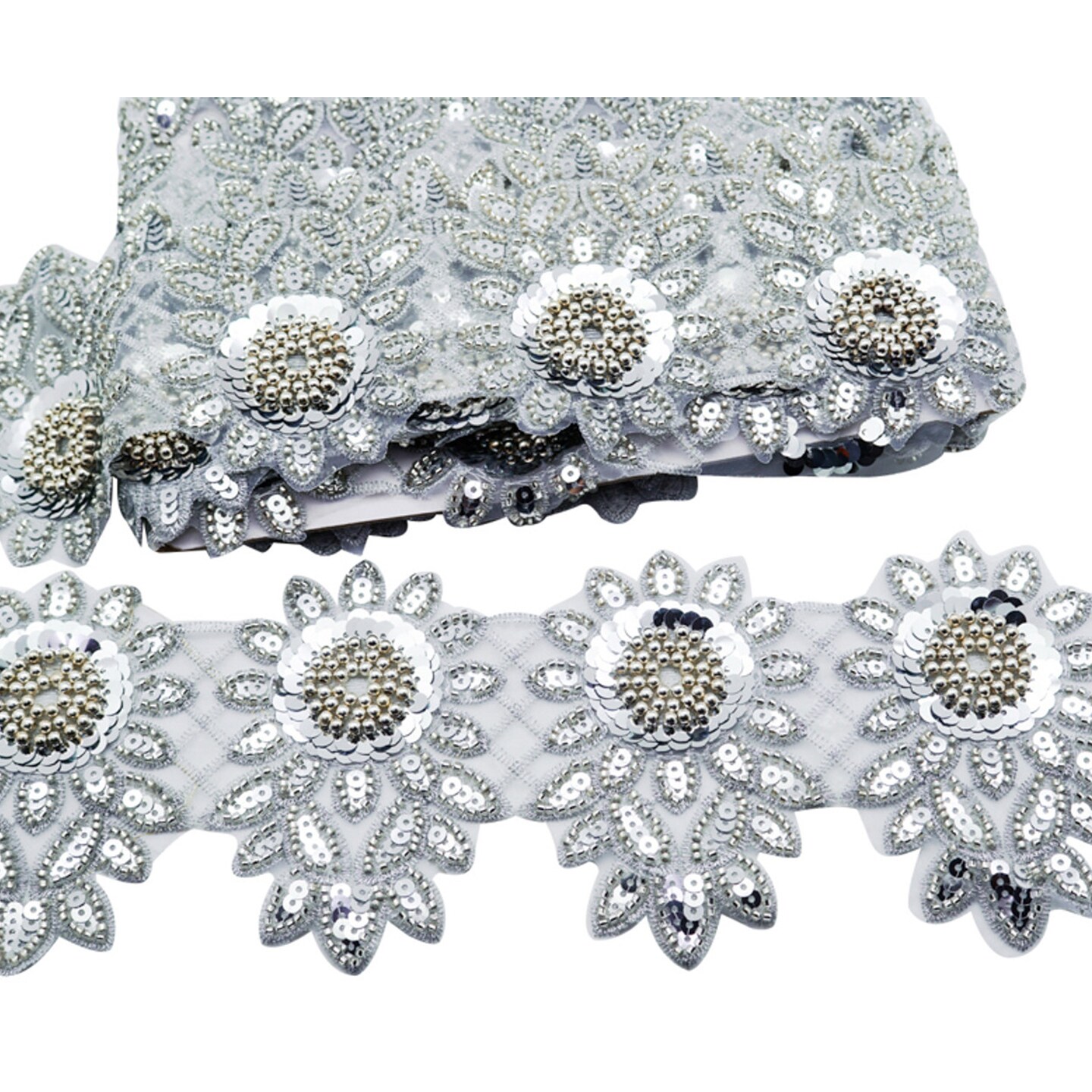 4 1/2"x 5 yards Silver Beaded Sequin Trim