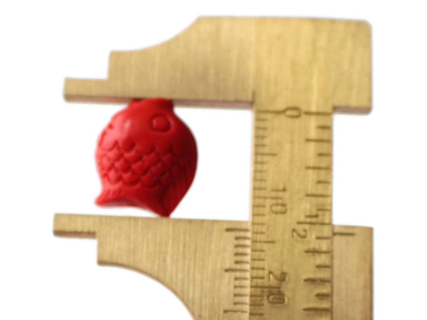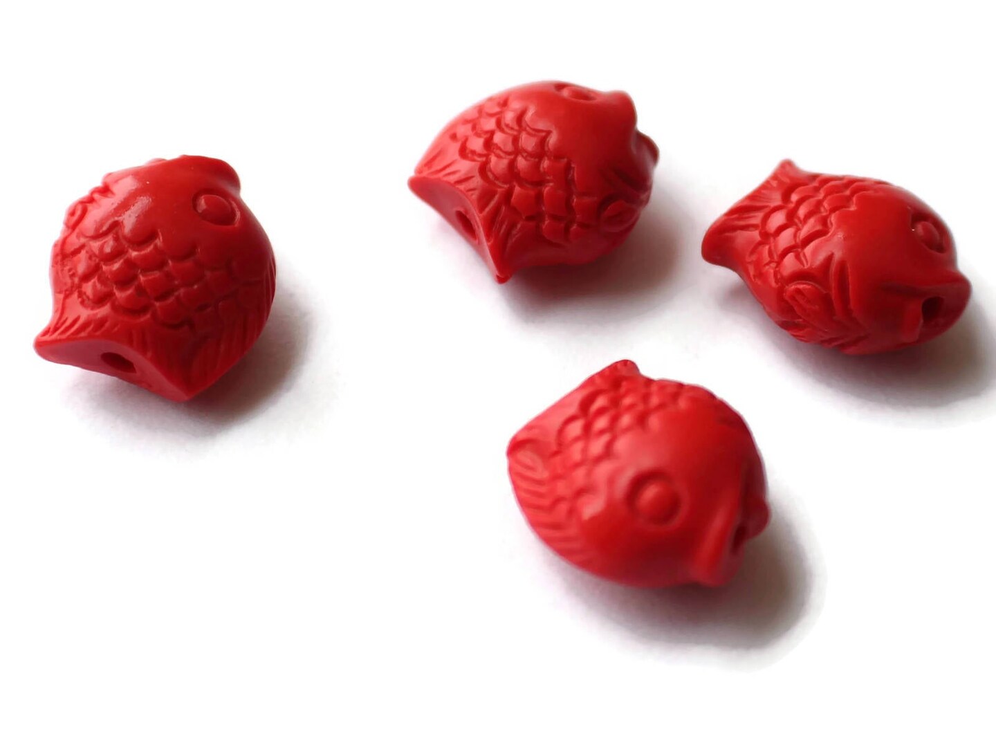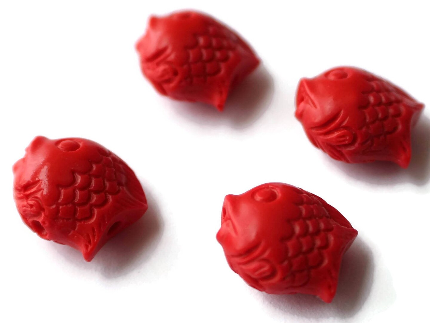 4 13mm Carved Cinnabar Fish Beads Red Lacquer Beads