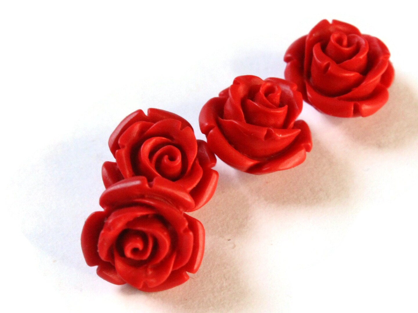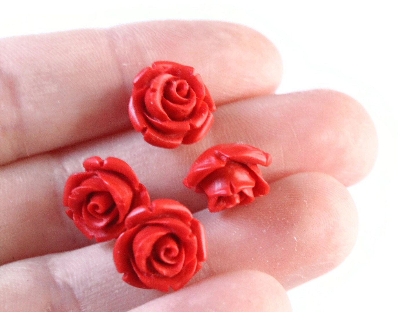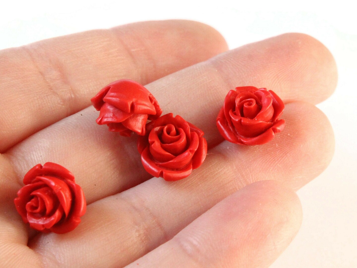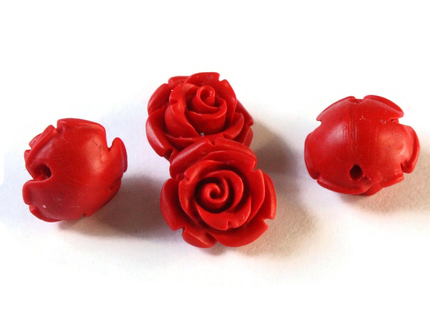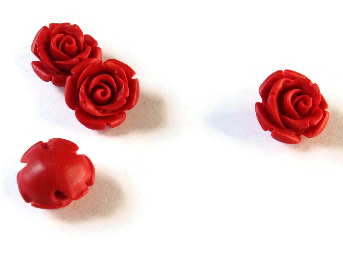 4 13mm Cinnabar Rose Beads - Red Flower Beads
