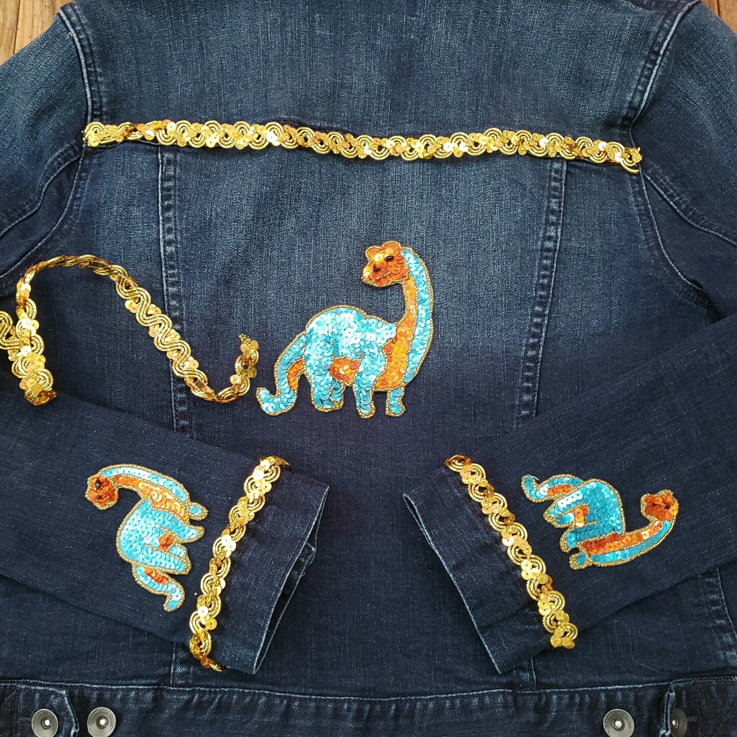 4 1/4" x 4 1/4" Brontosaurus Dinosaur Sequin Applique/Patch