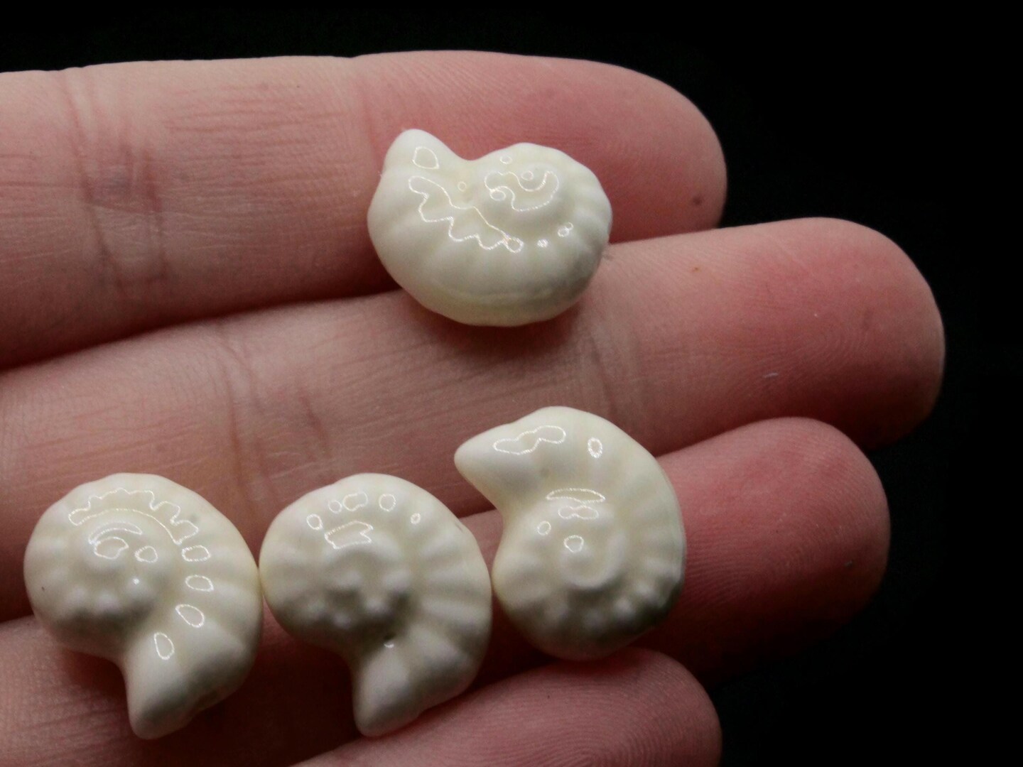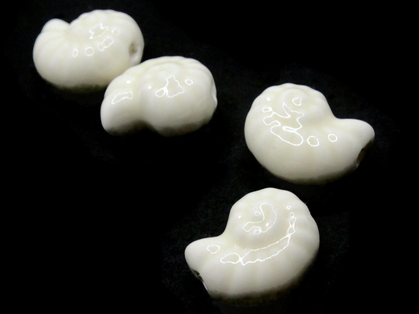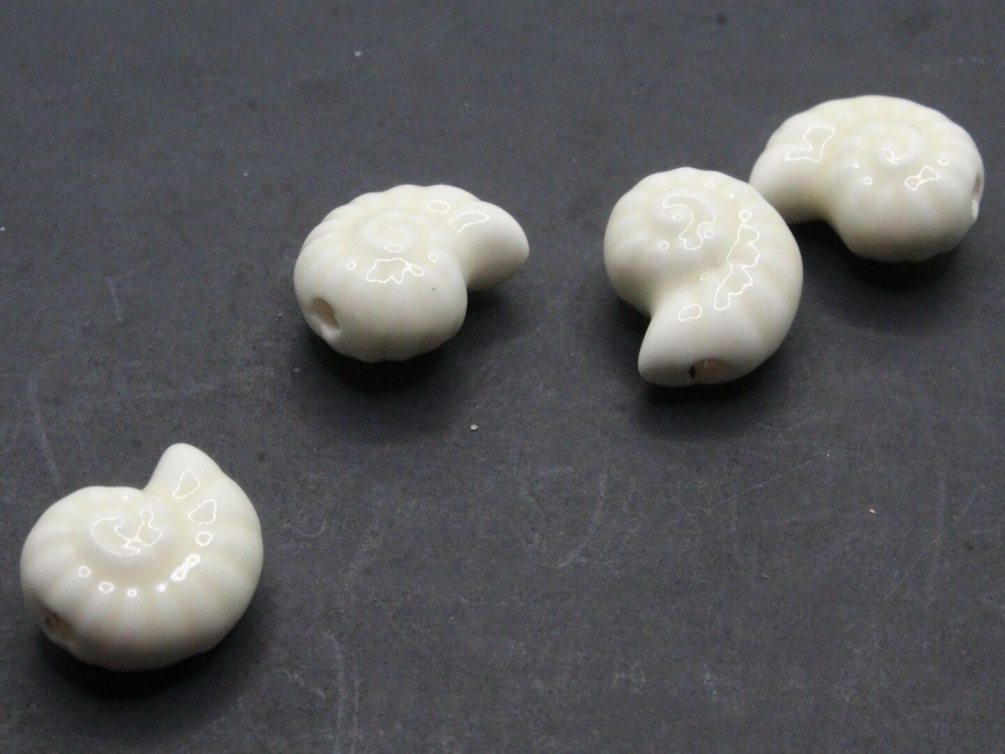4 14mm Off-White Porcelain Spiral Seashell Beads