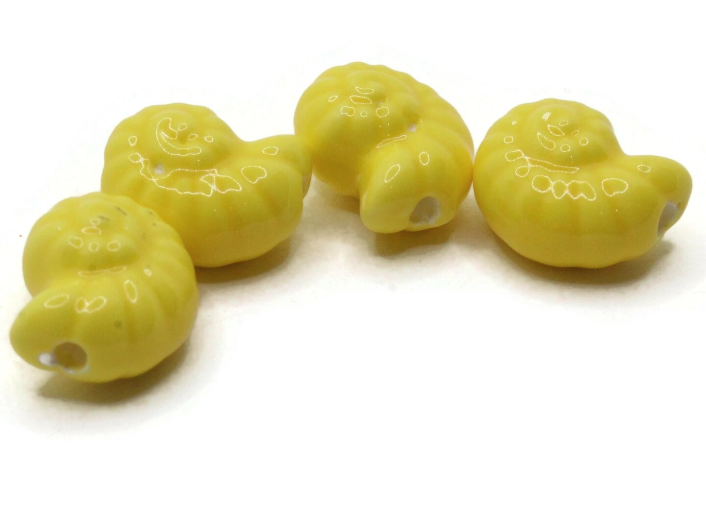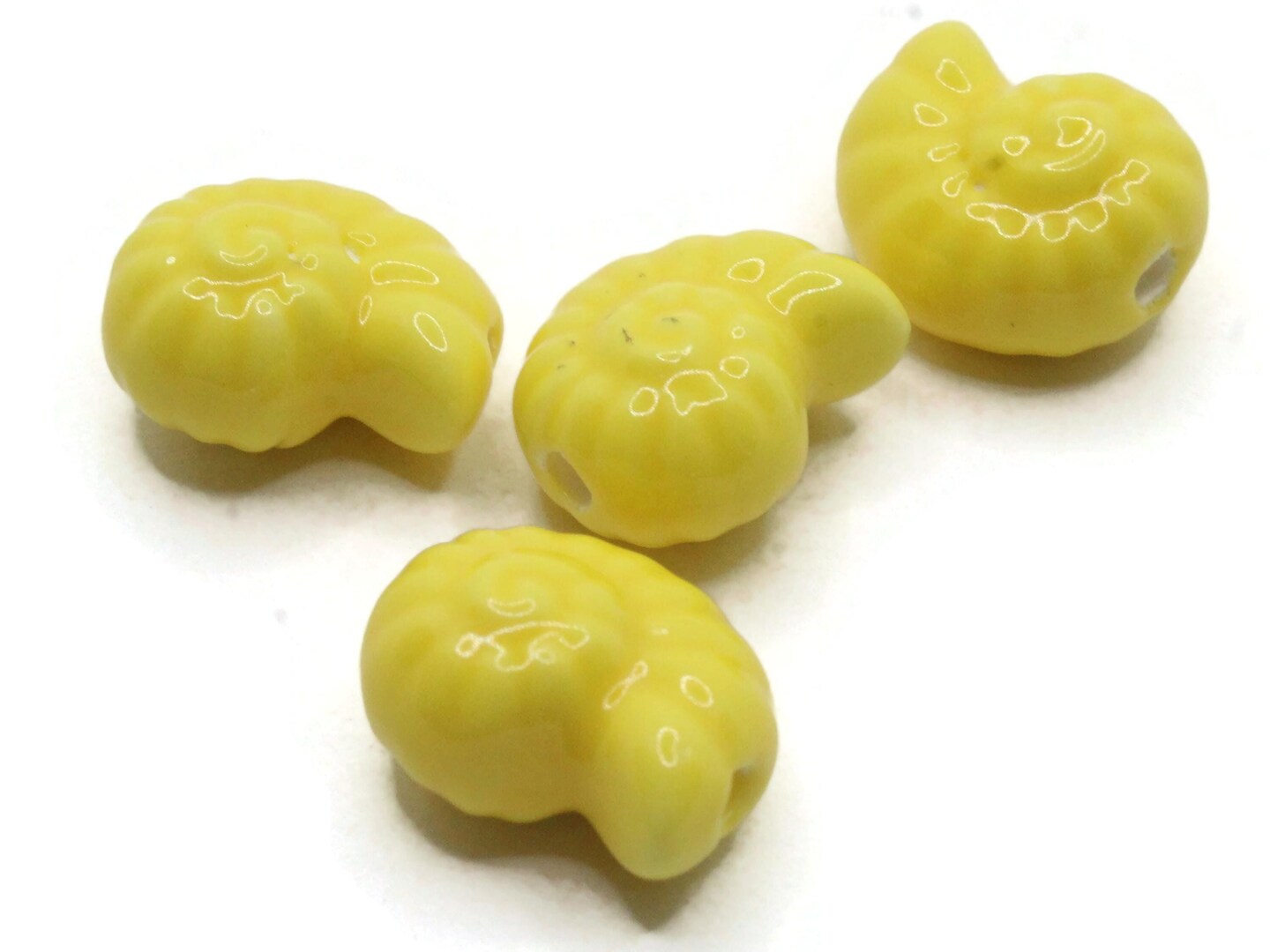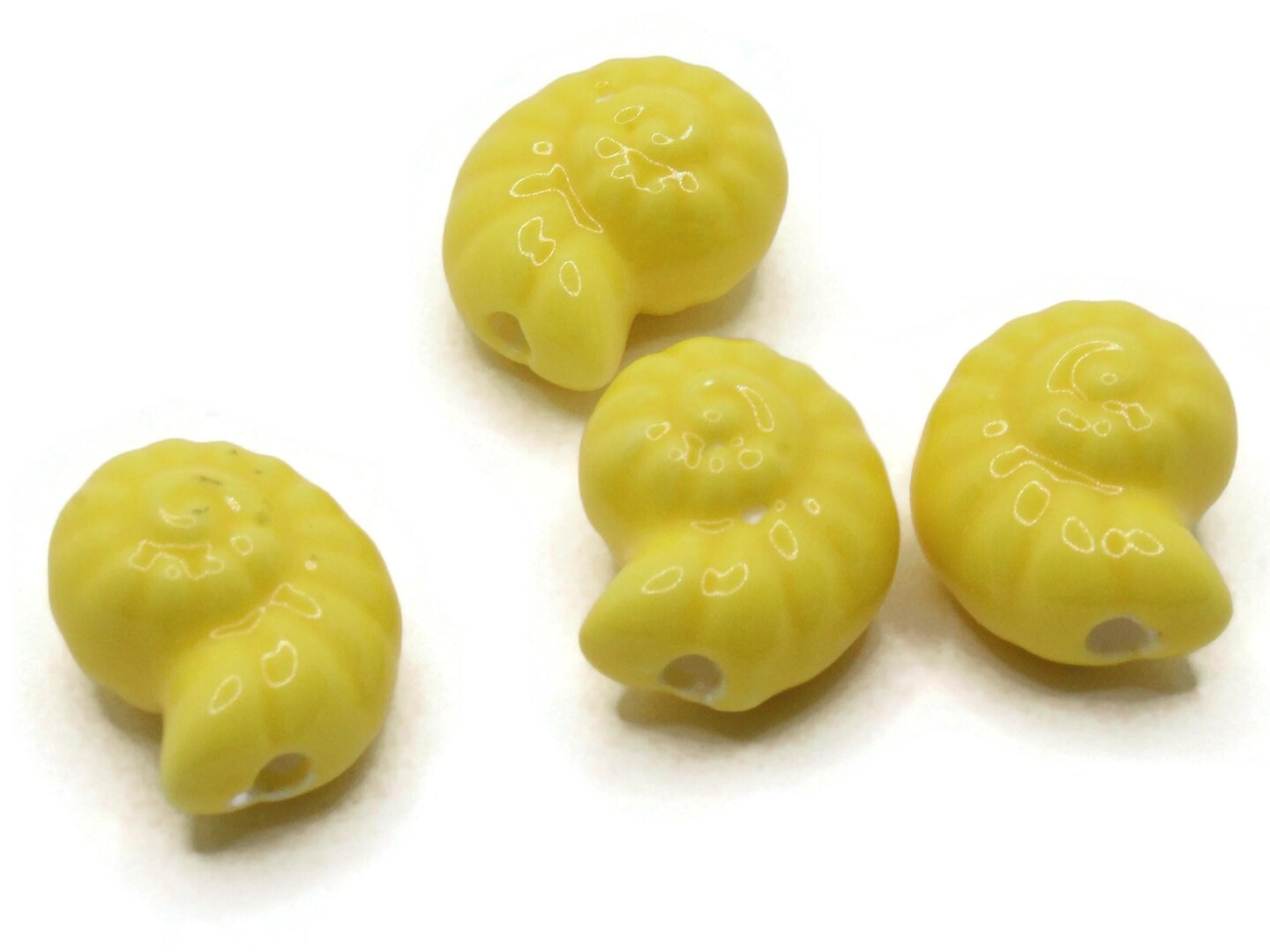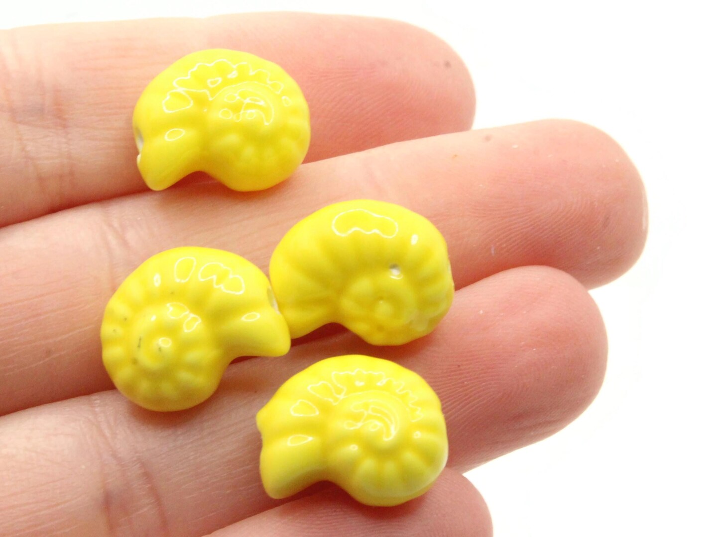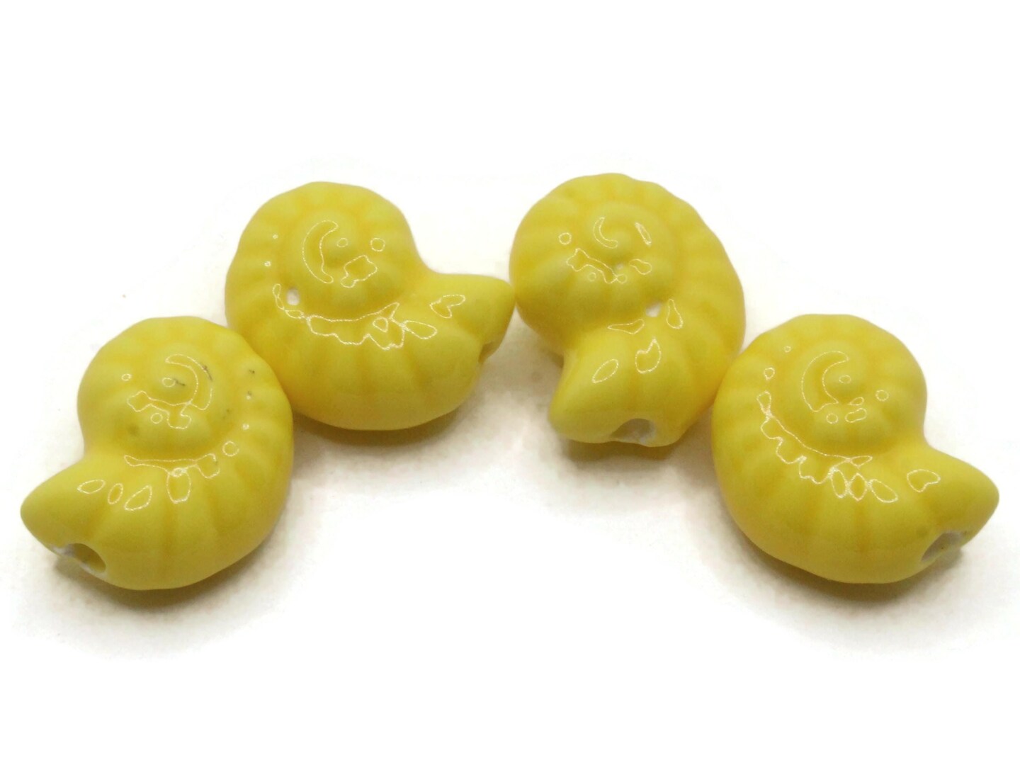 4 14mm Yellow Porcelain Spiral Seashell Beads