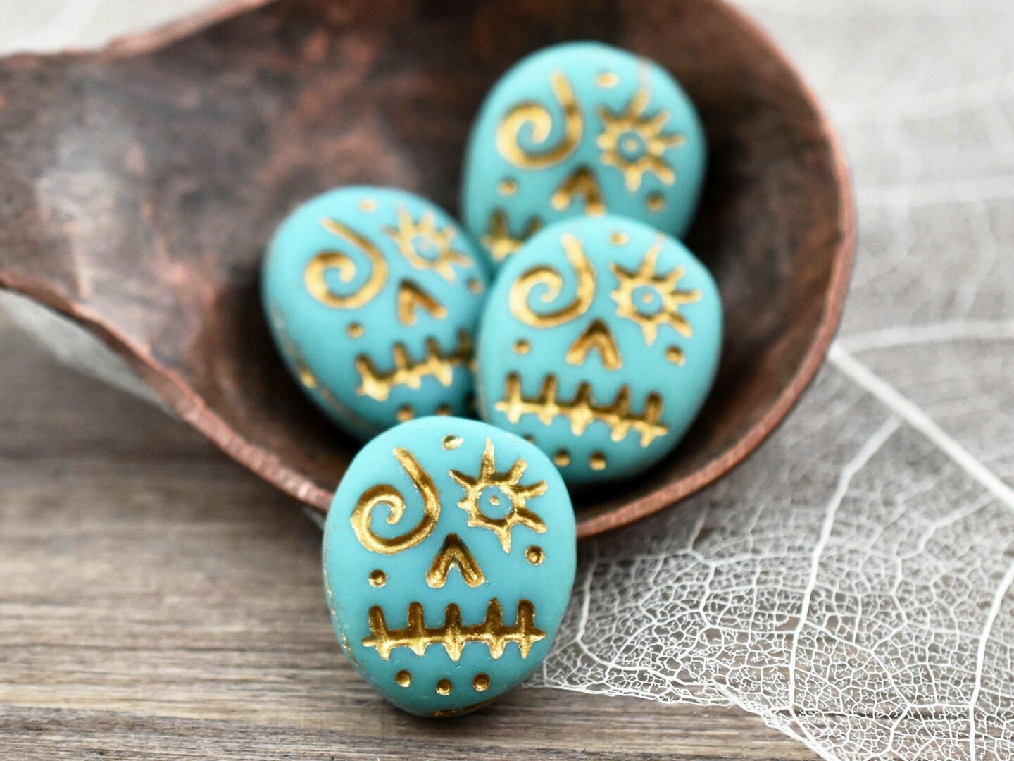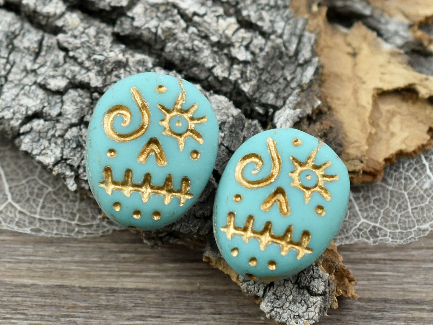 *4* 15x13mm Gold Washed Matte Turquoise Voodoo Face Beads