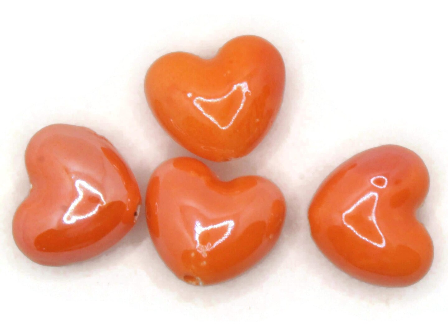 4 16mm Orange Porcelain Heart Beads Valentine's Day Beads