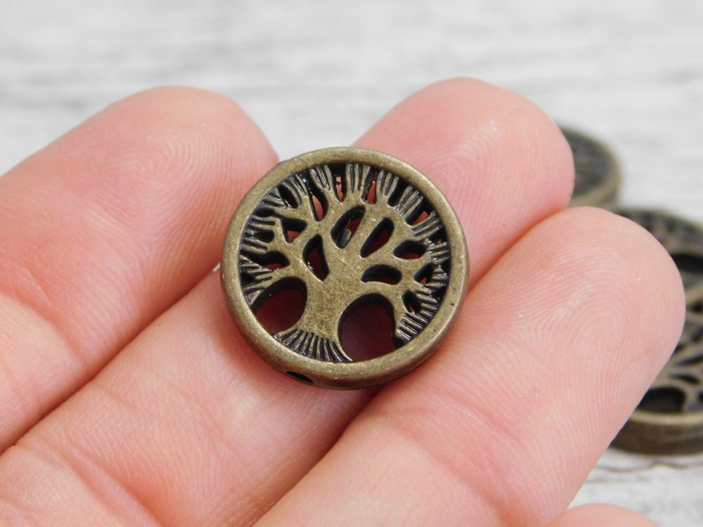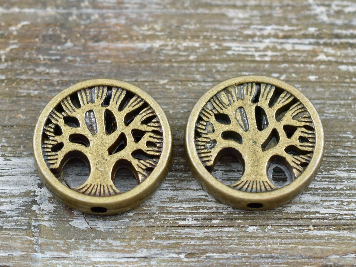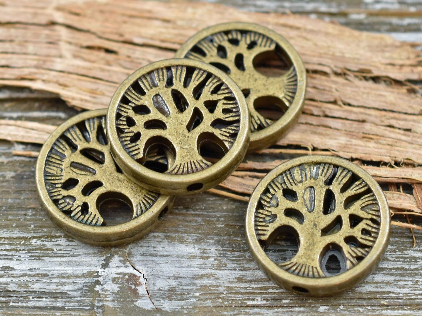 *4* 18mm Antique Bronze Tree Of LIfe Coin Beads