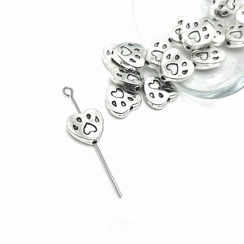 4, 20 or 50 Pieces: Heart Paw Spacer Charm Beads - Double Sided