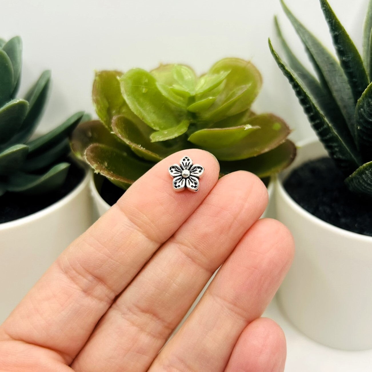 4, 20 or 50 Pieces: Silver Flower Spacer Beads - Double Sided