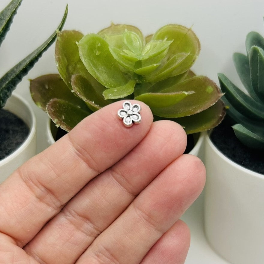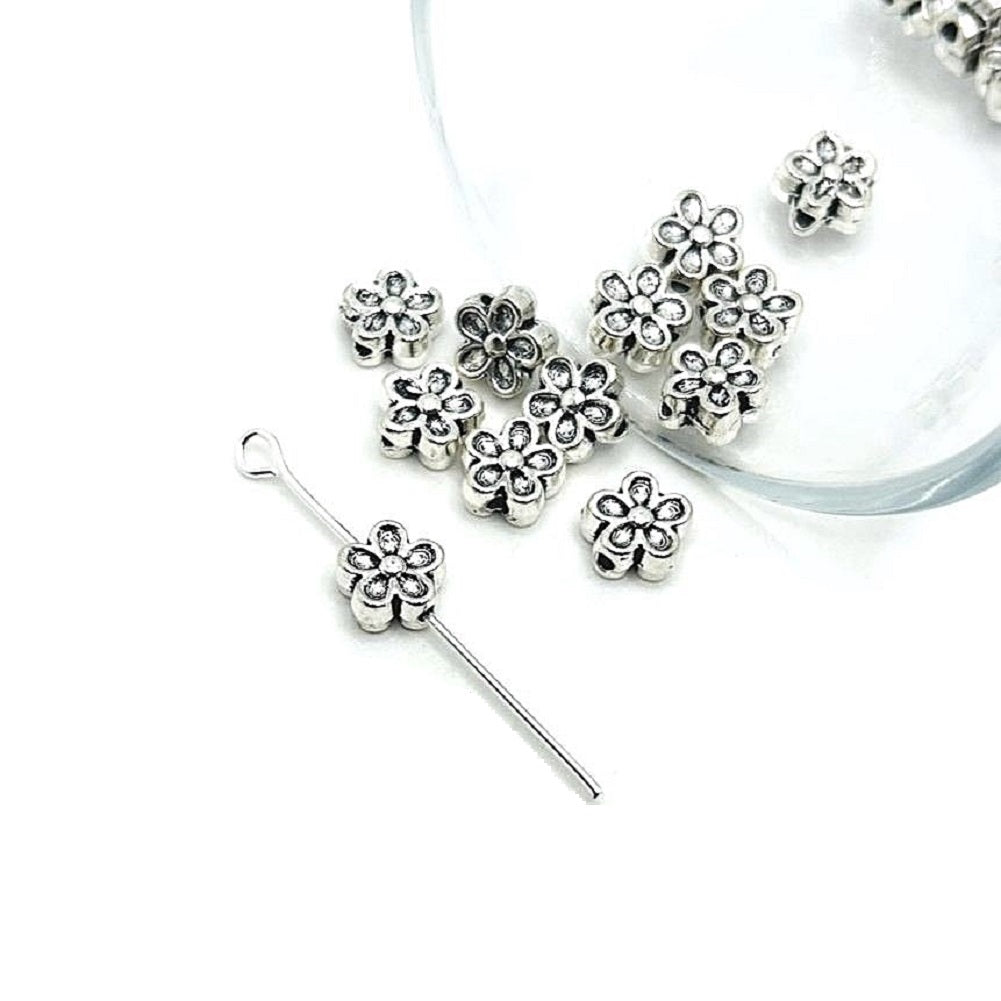 4, 20 or 50 Pieces: Small Silver Flower Spacer Beads
