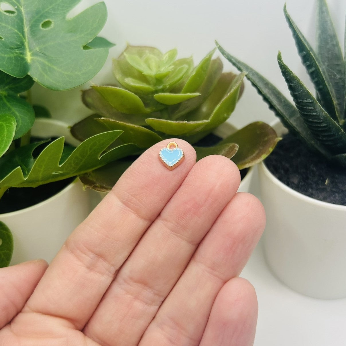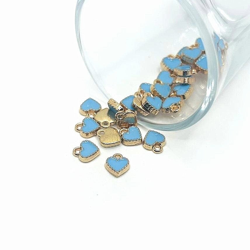 4, 20 or 50 Pieces: Tiny Blue and Gold Enamel Heart Charms