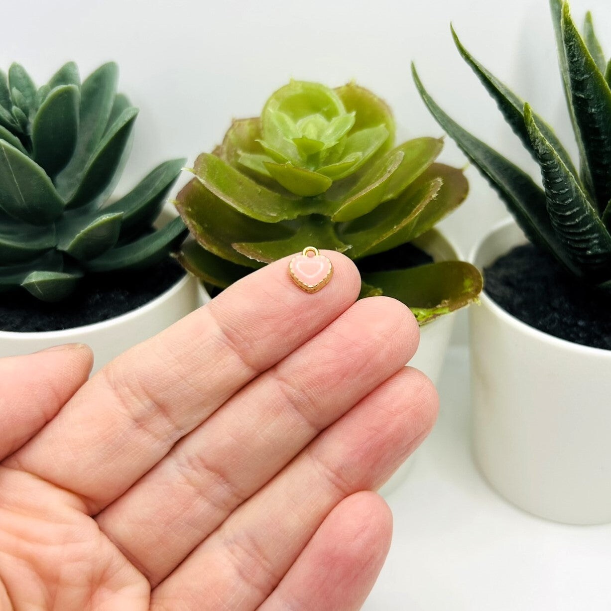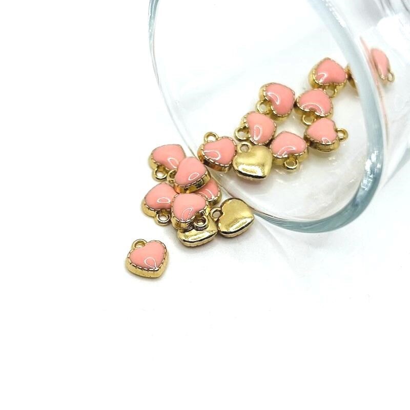 4, 20 or 50 Pieces: Tiny Pink and Gold Enamel Heart Charms