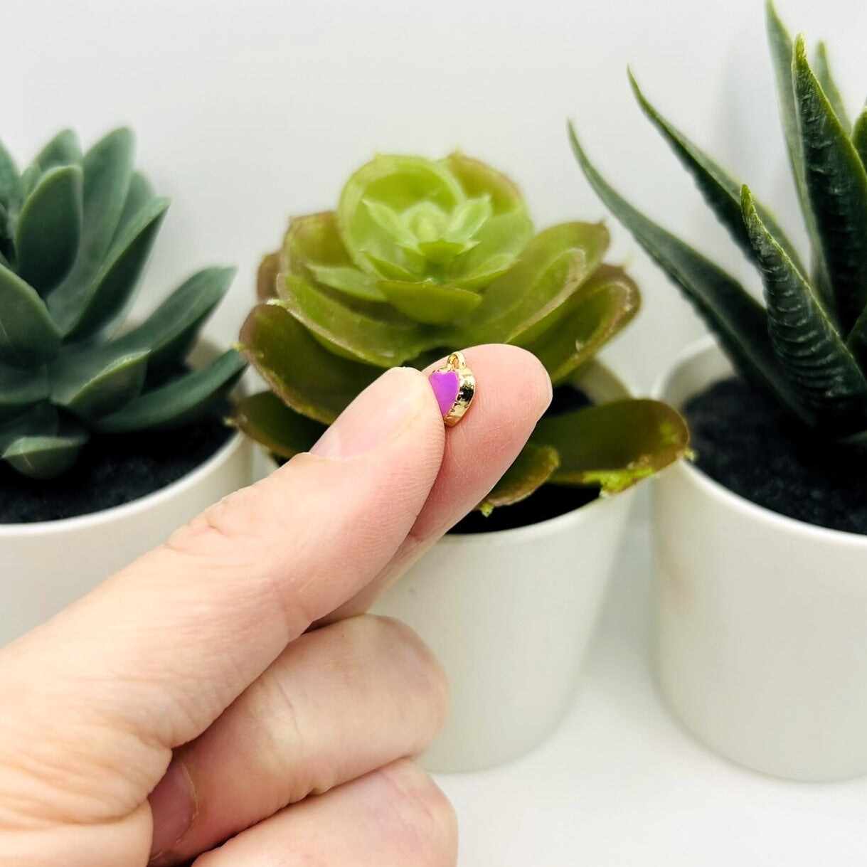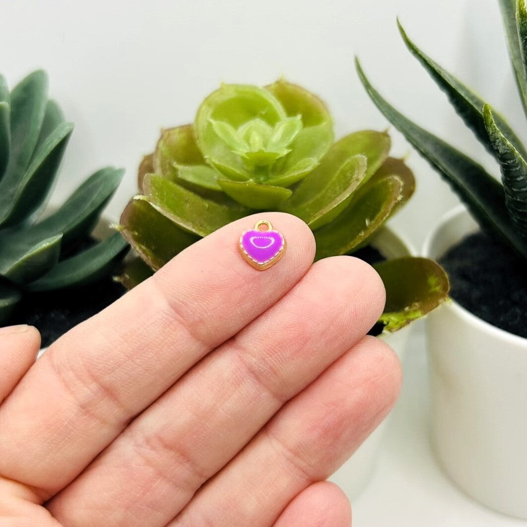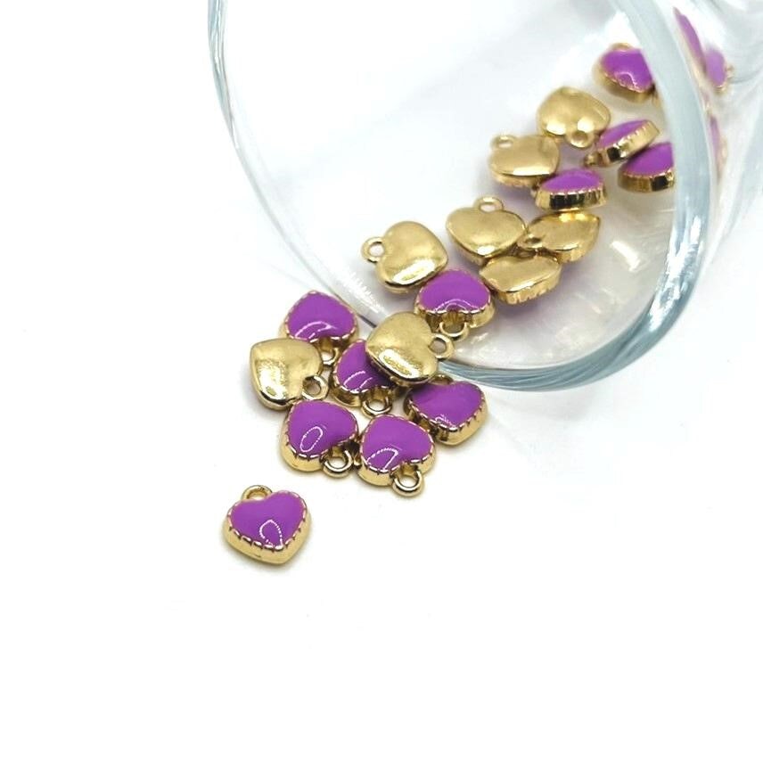 4, 20 or 50 Pieces: Tiny Purple and Gold Enamel Heart Charms