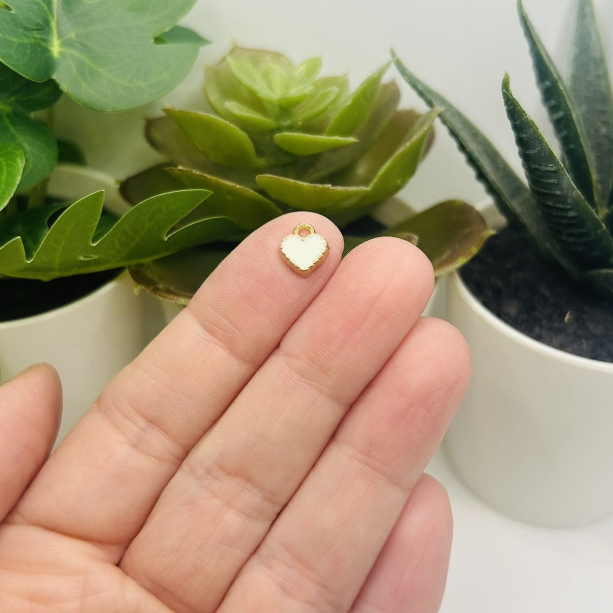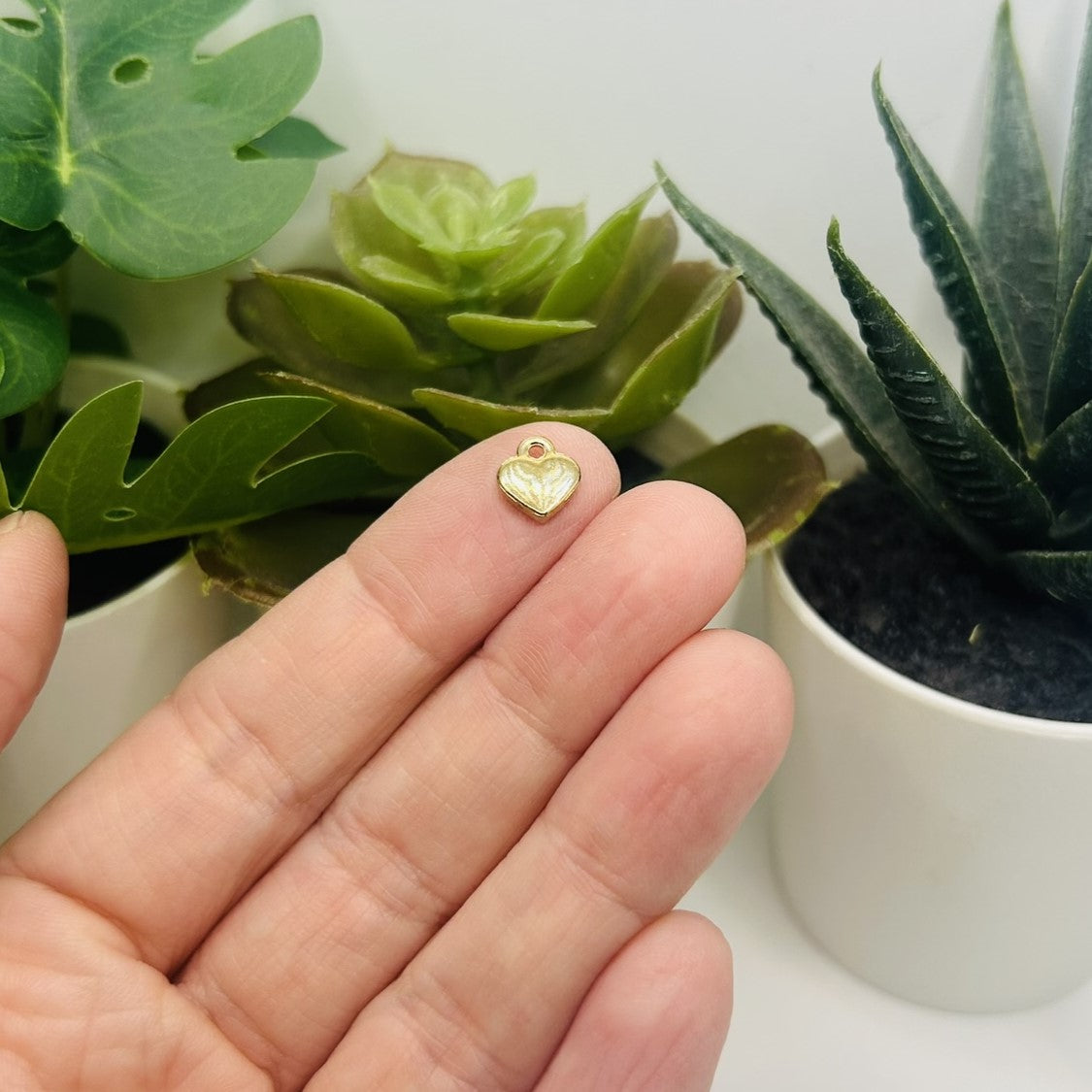 4, 20 or 50 Pieces: Tiny White and Gold Enamel Heart Charms