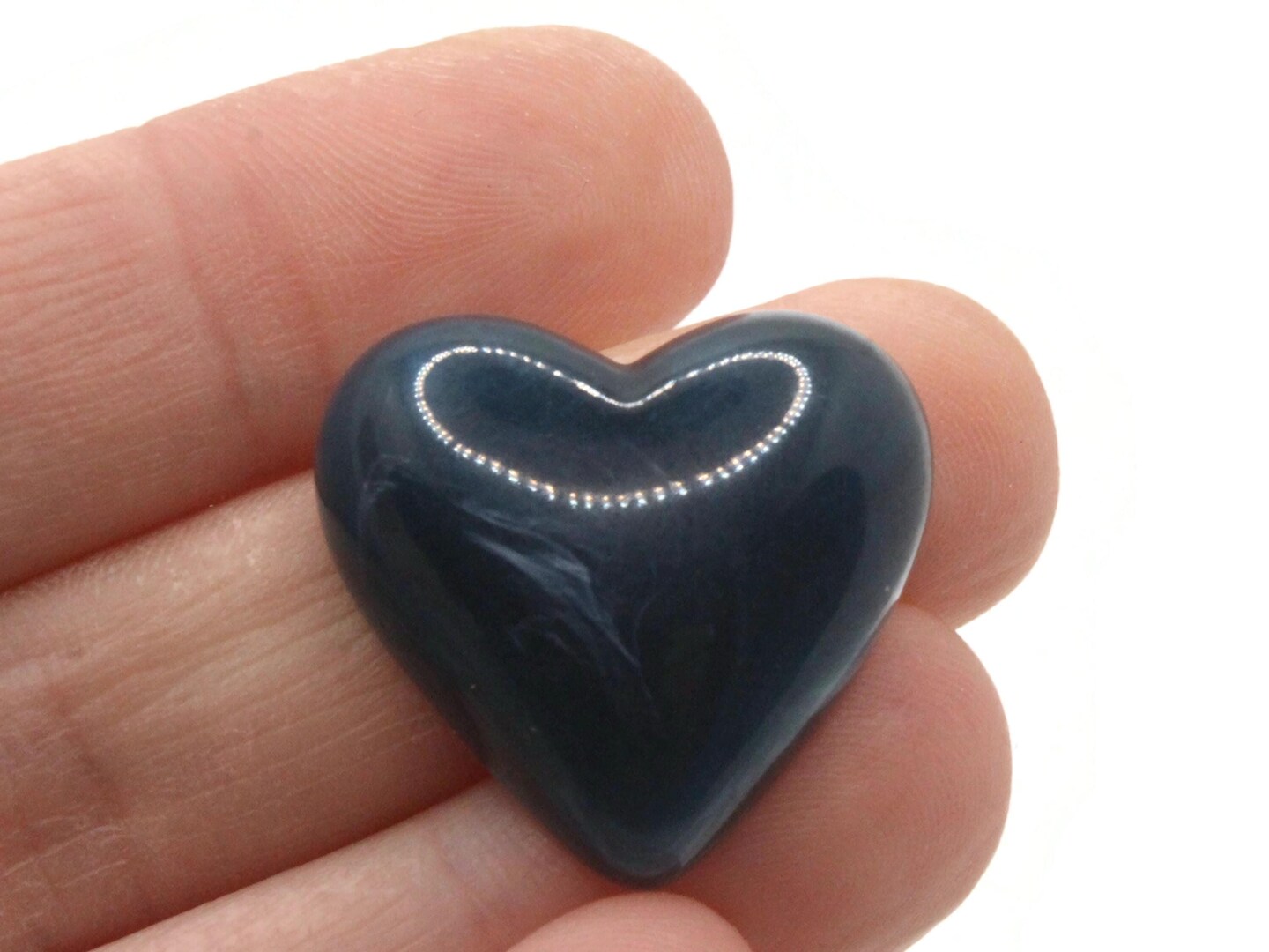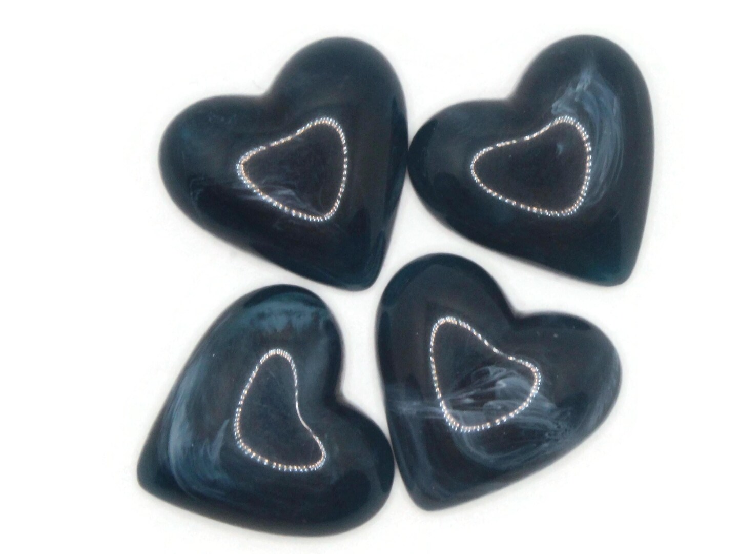4 25mm Blue Swirling Heart Vintage Lucite Cabochons