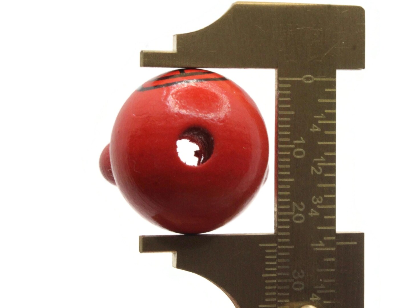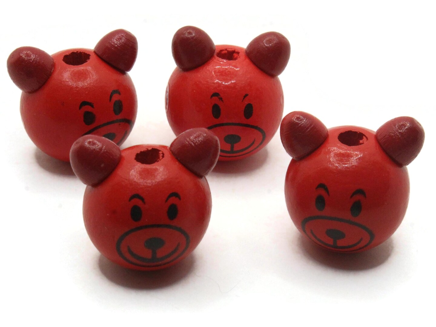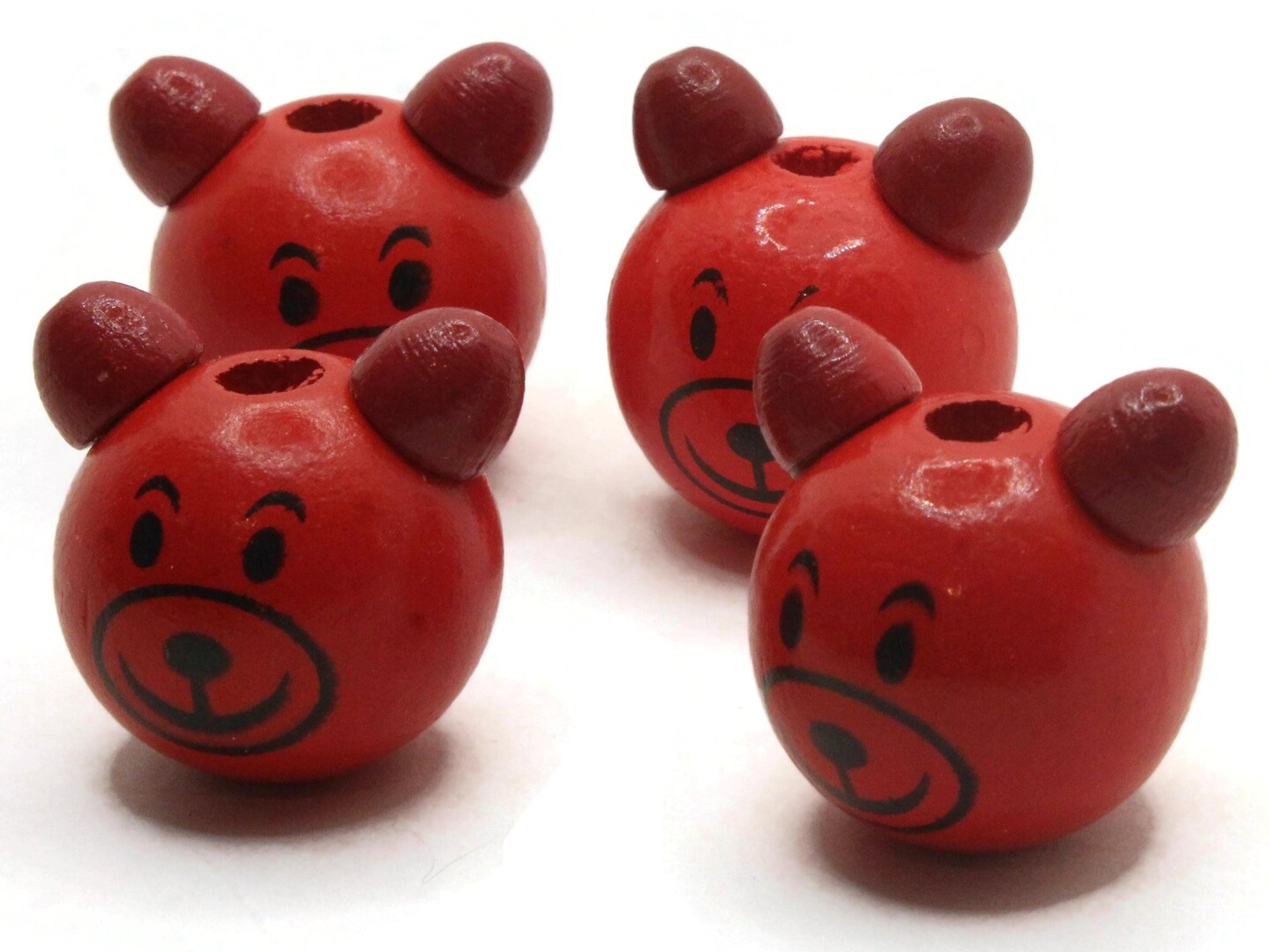 4 26mm Round Red Wood Bear Head Beads Large Hole Wooden Beads