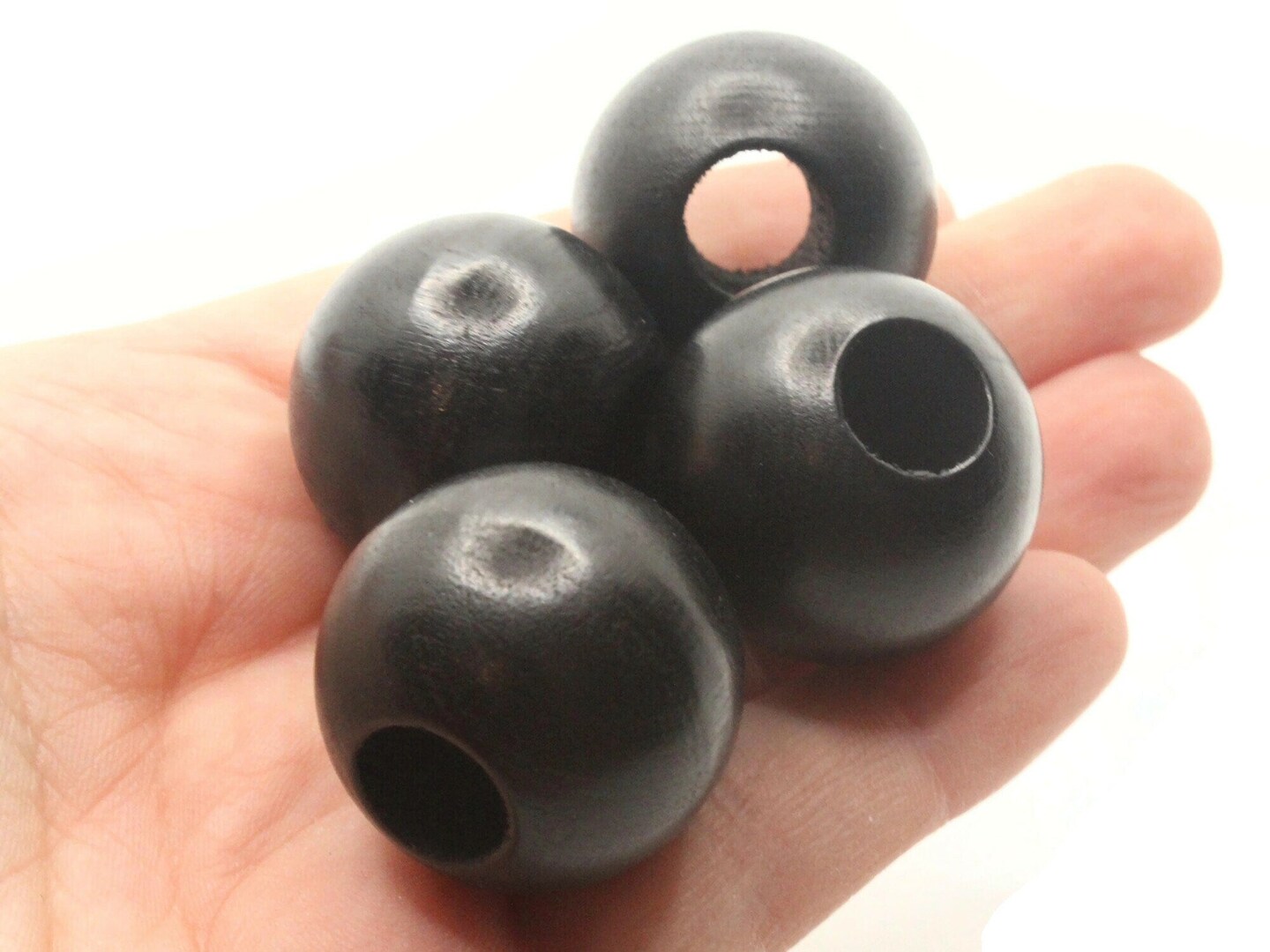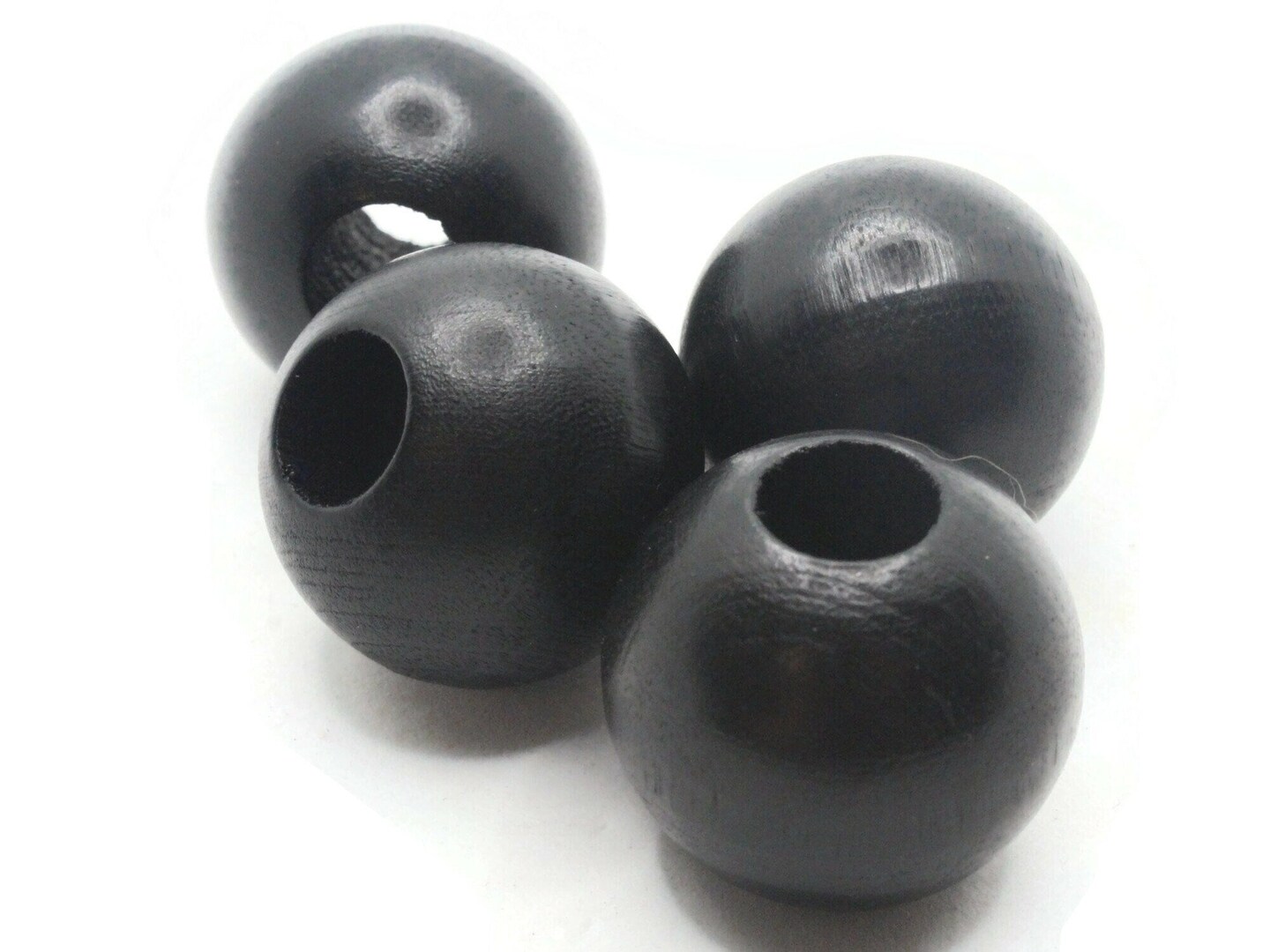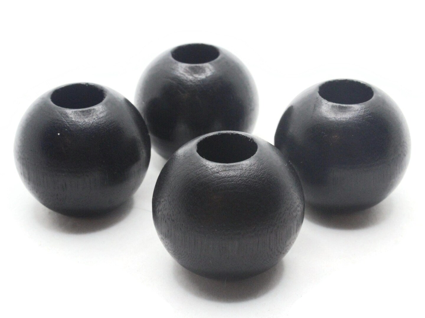 4 26mm Vintage Black Large Hole Round Wood Macrame Beads