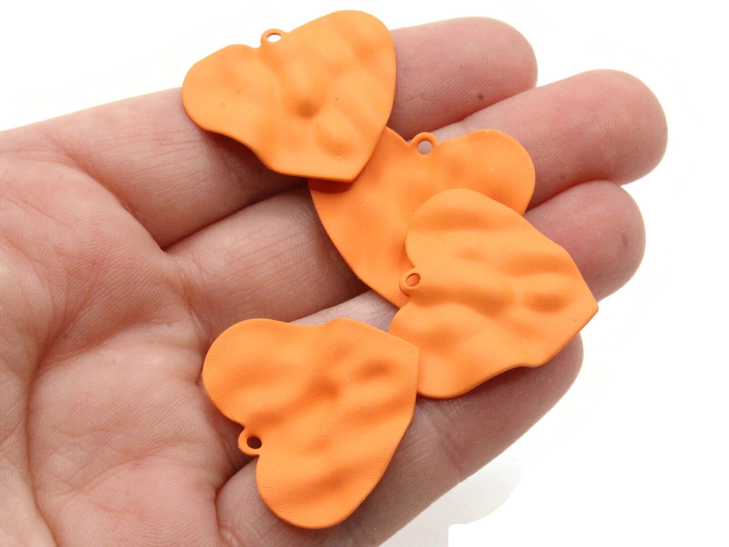 4 28mm Orange Painted Iron Metal Heart Charms