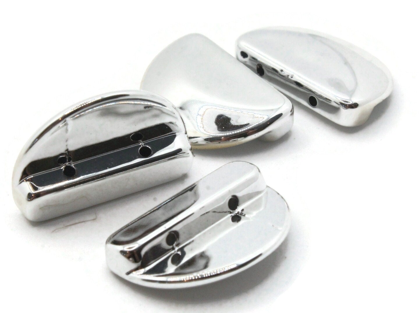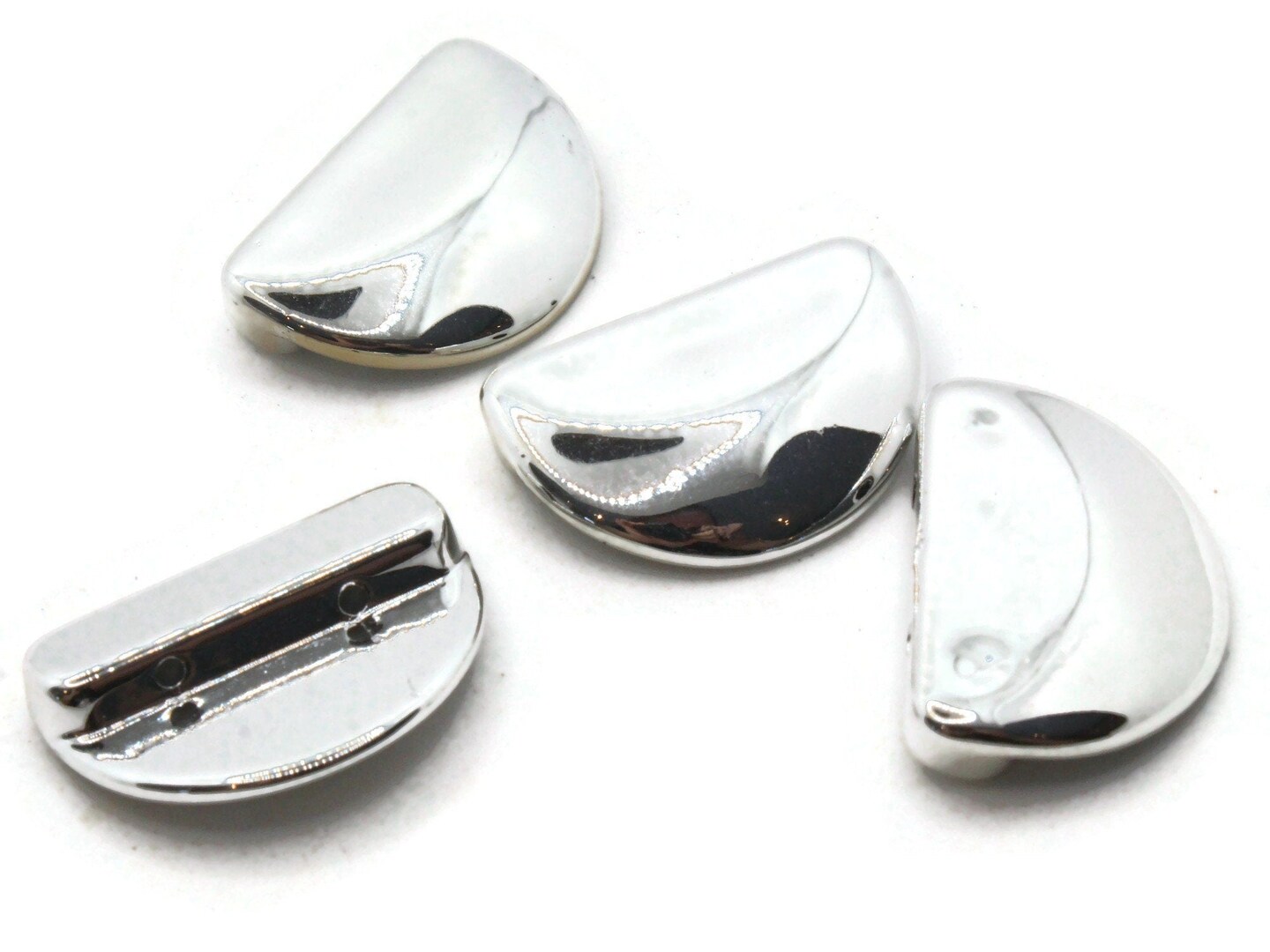 4 28mm Smooth Half Round Two Hole Spacers Vintage Silver Plated Plastic Beads