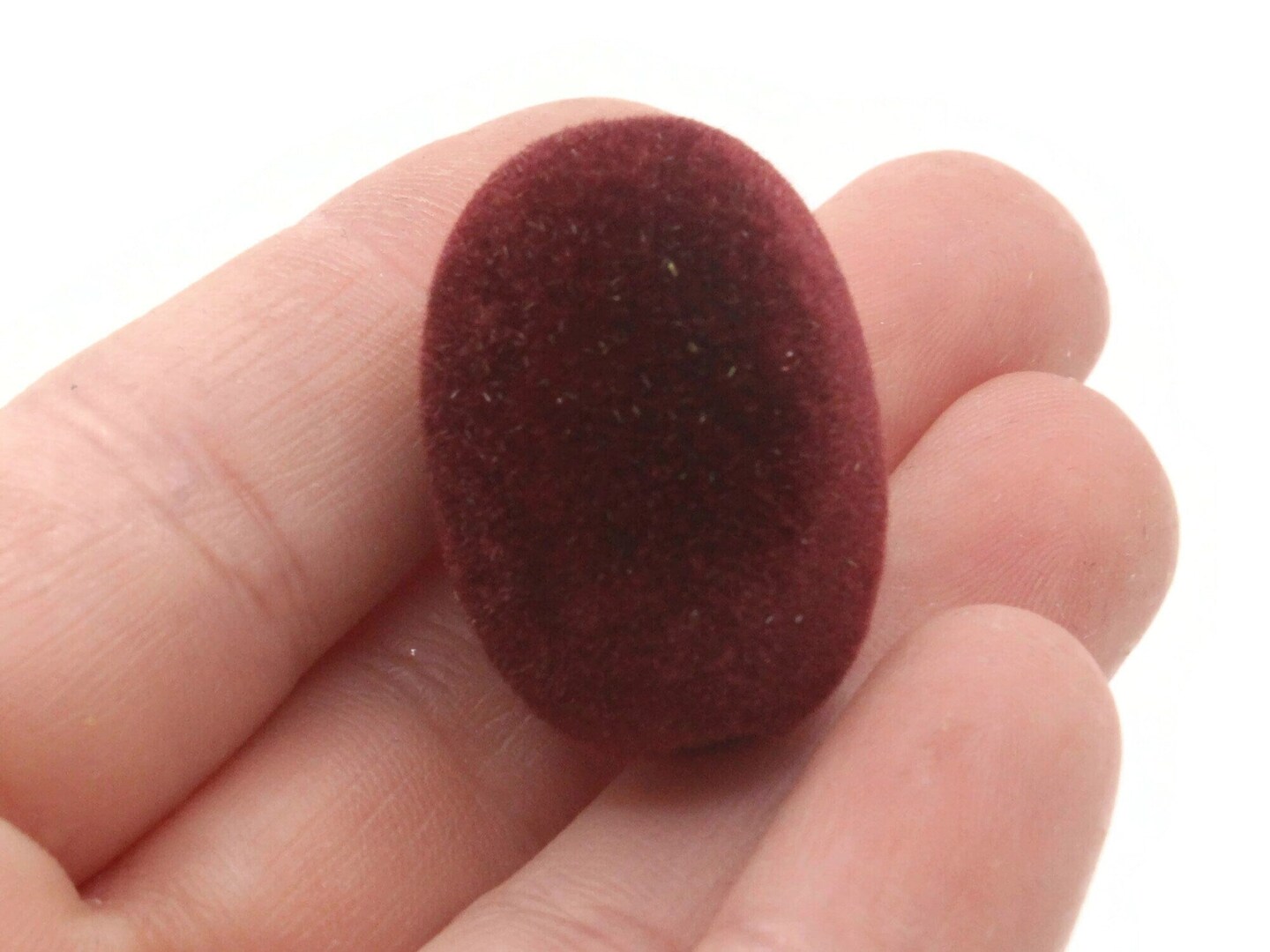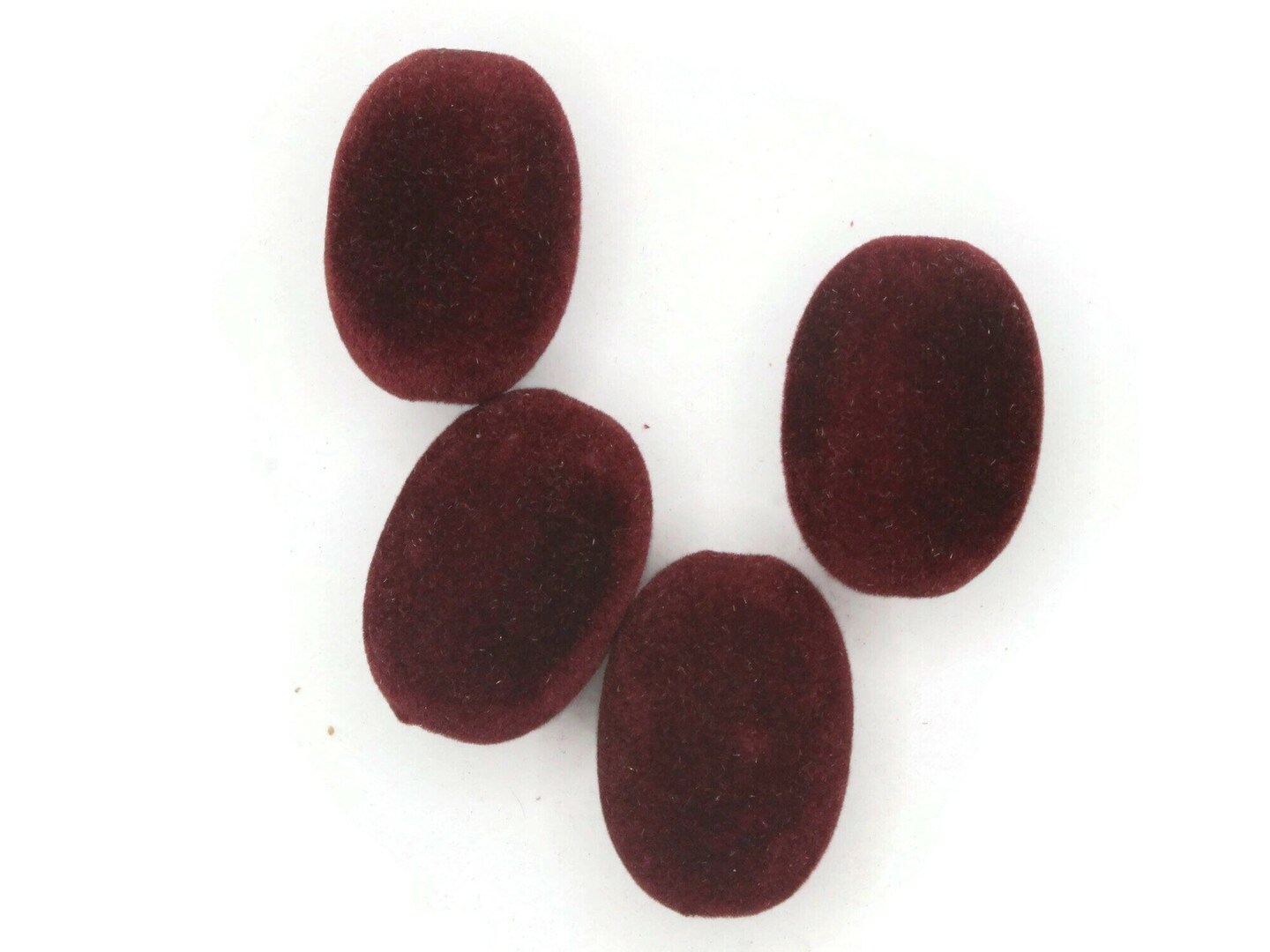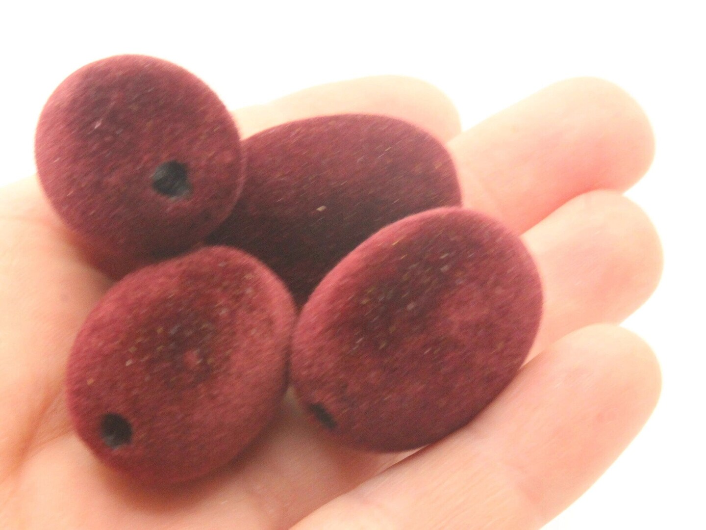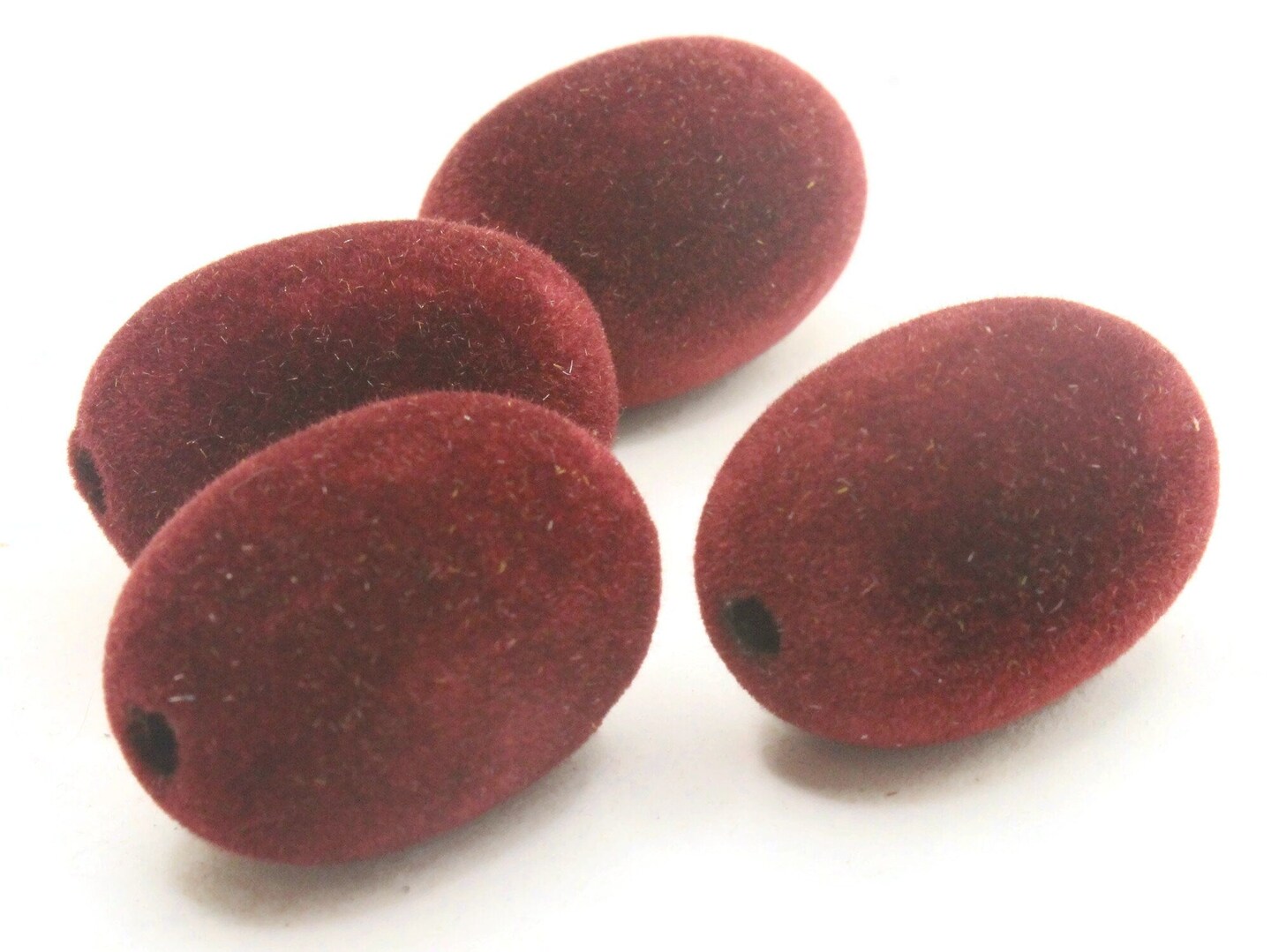 4 28mm Velvet Oval Dark Red Burgundy Flocked Acrylic Base Beads