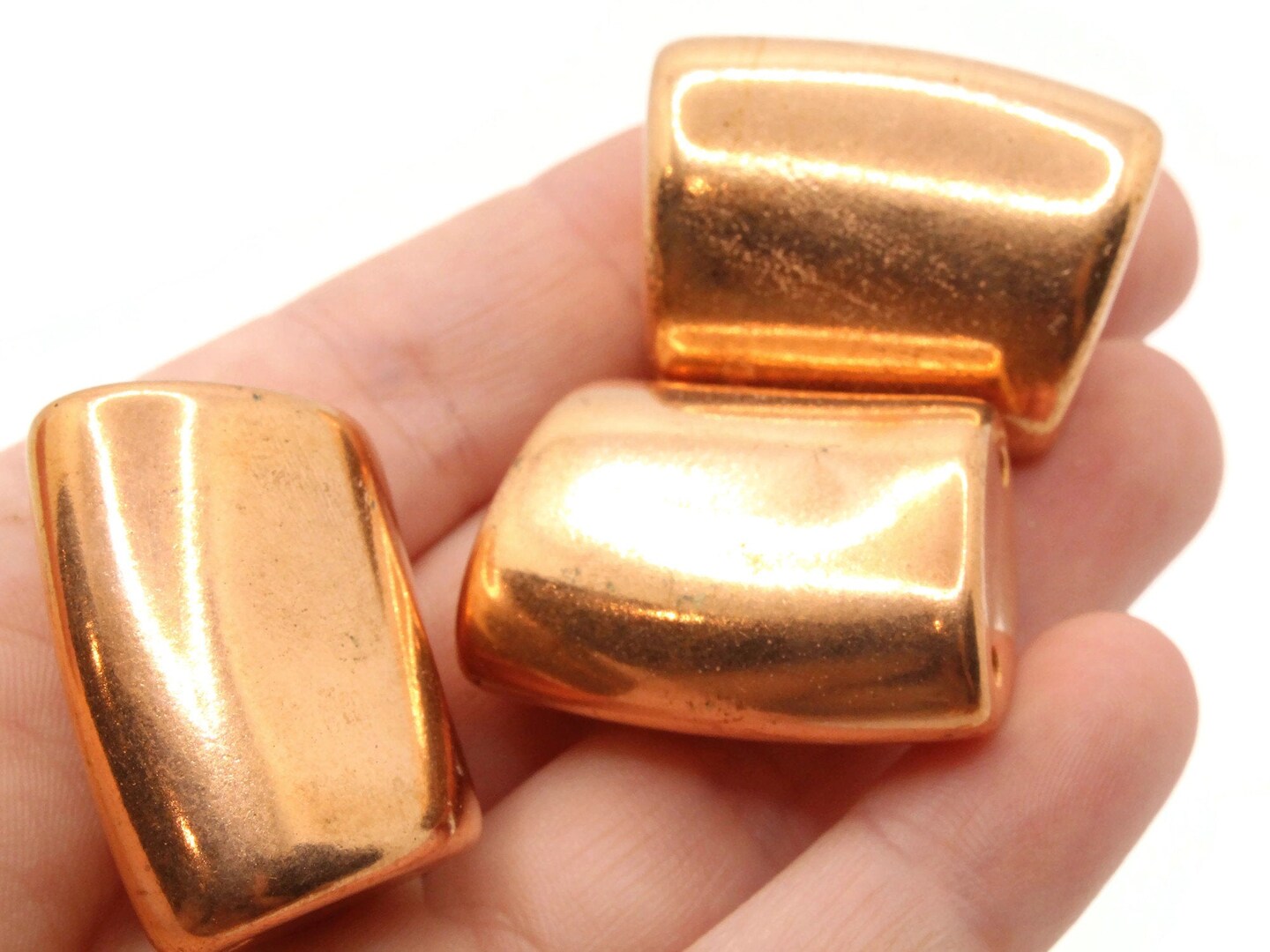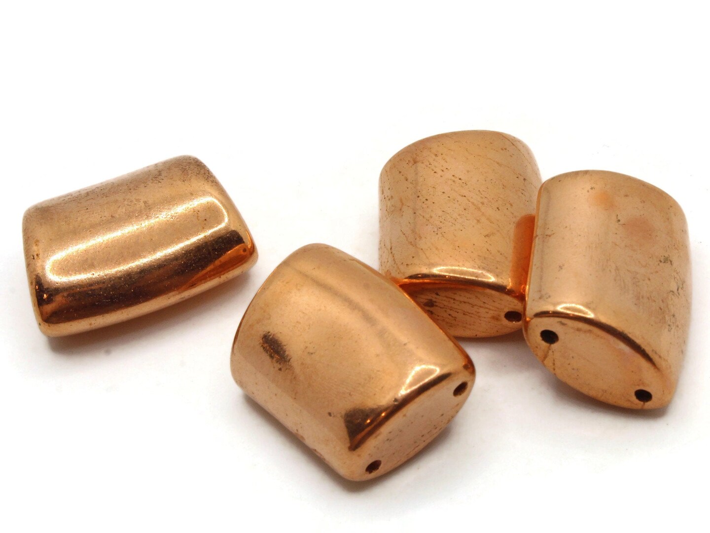 4 32mm Two Hole Flat Curved Rectangle Vintage Red Copper Plated Plastic Bead