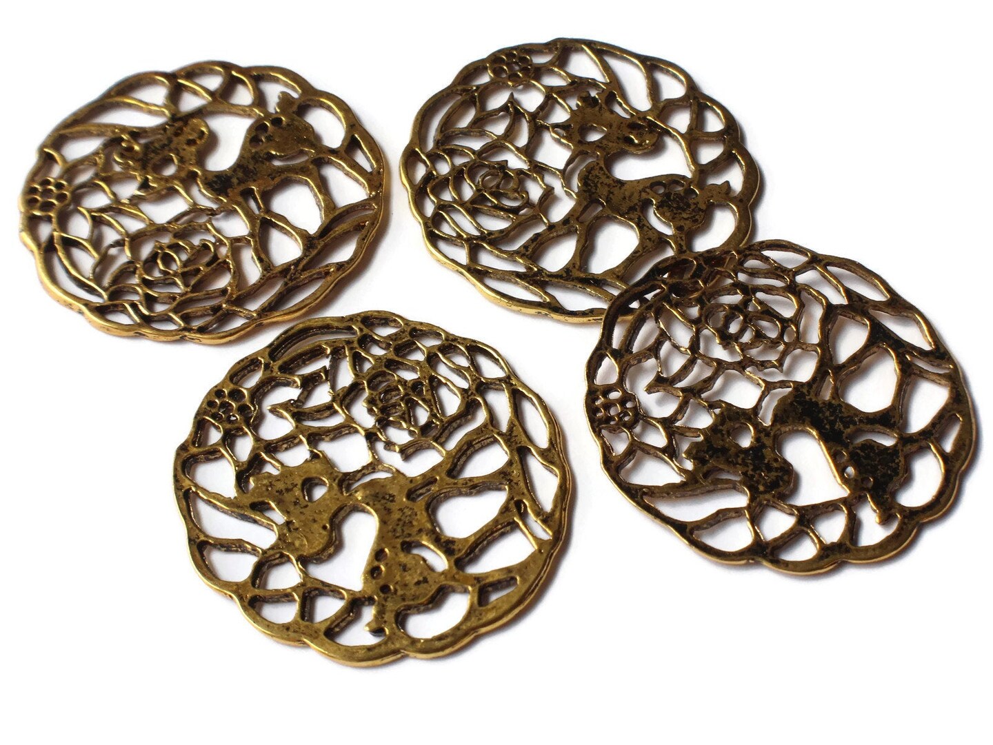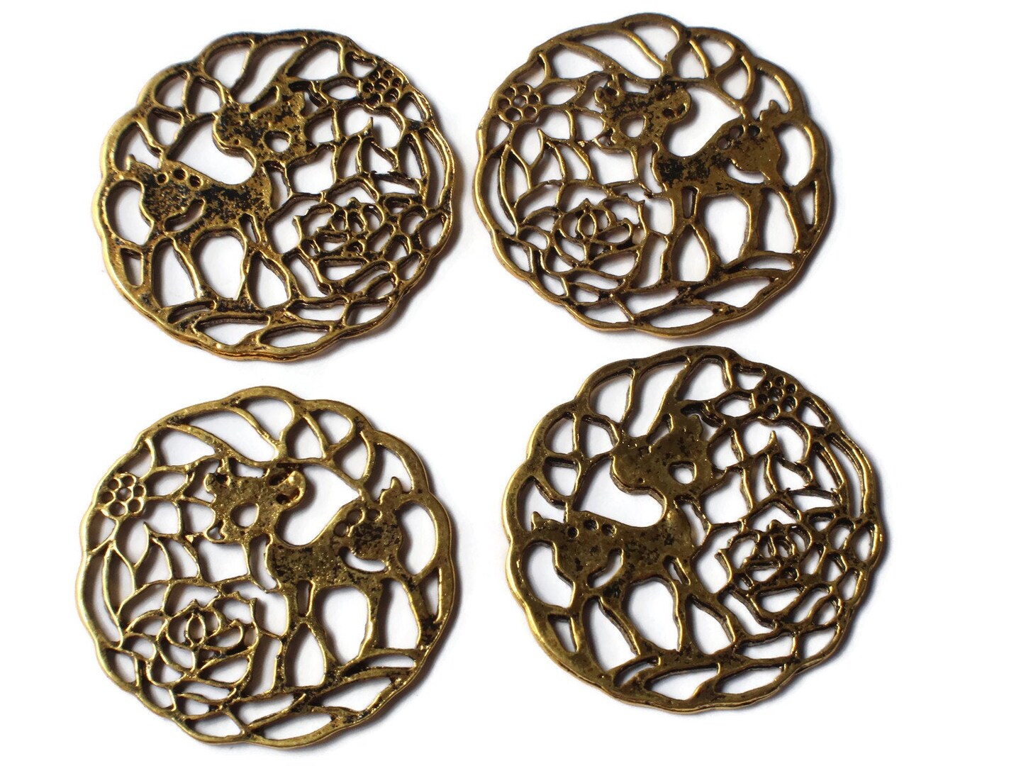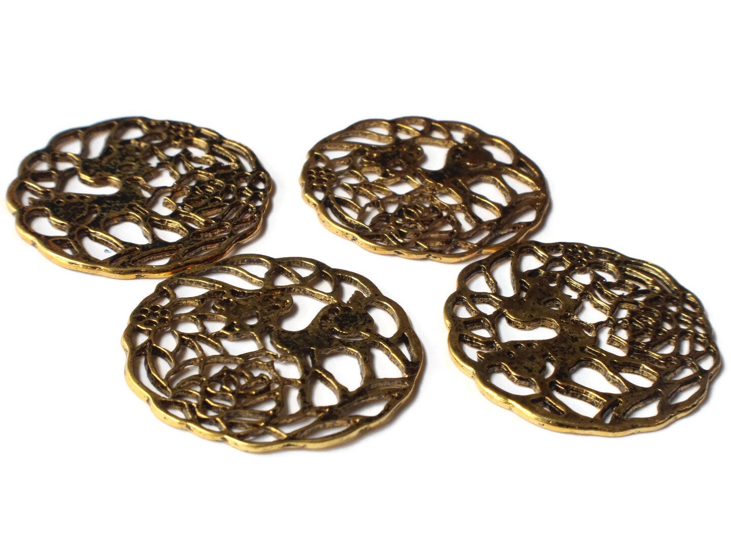 4 33mm Golden Filigree Deer Charms