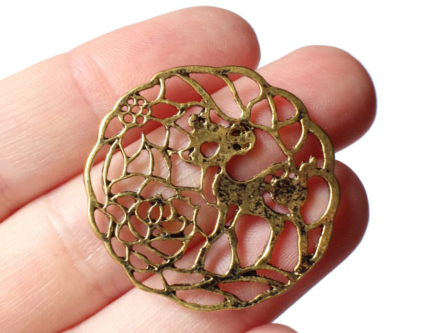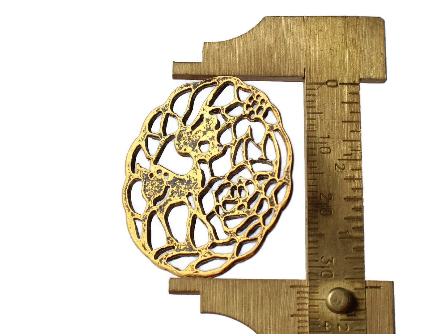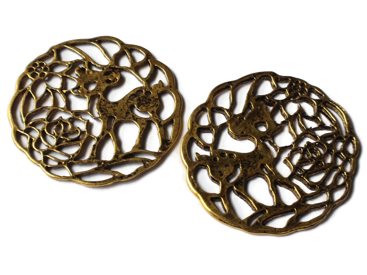 4 33mm Golden Filigree Deer Charms