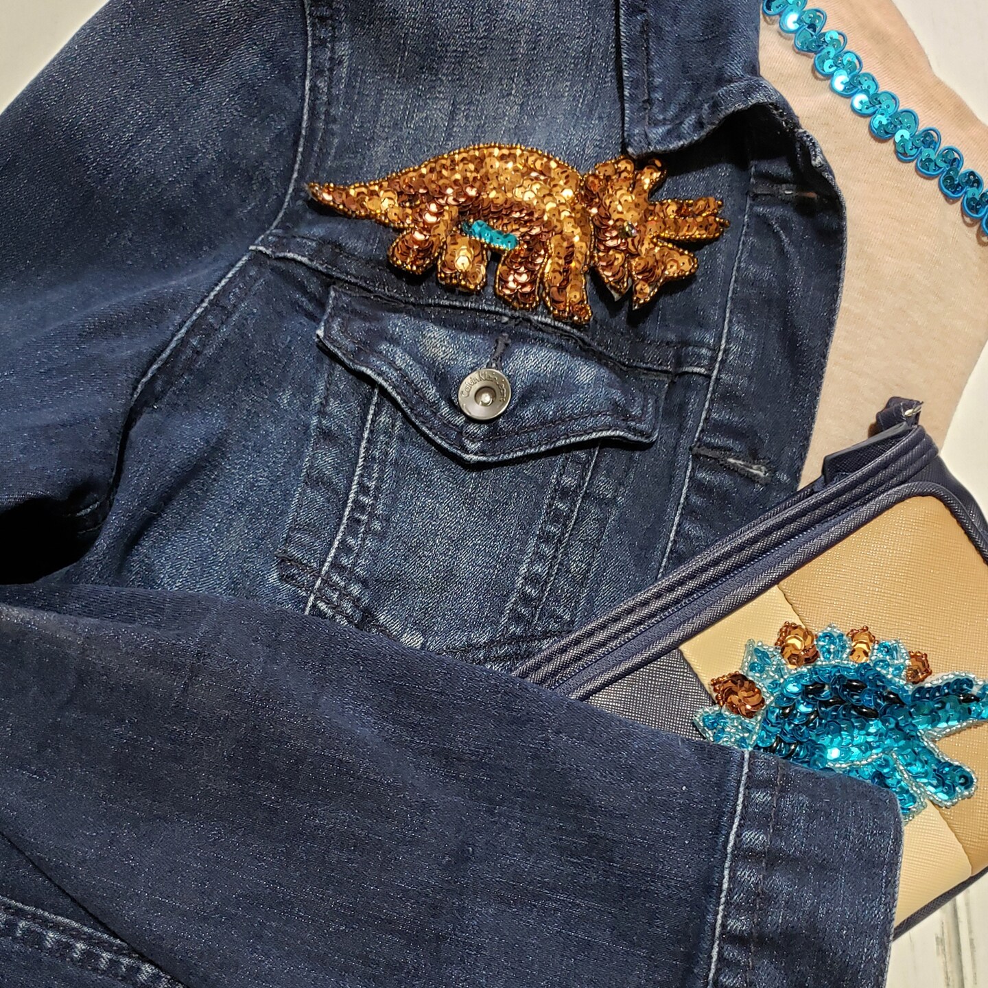 4 3/4" x 2" T-Rex Dinosaur Sequin Applique/Patch