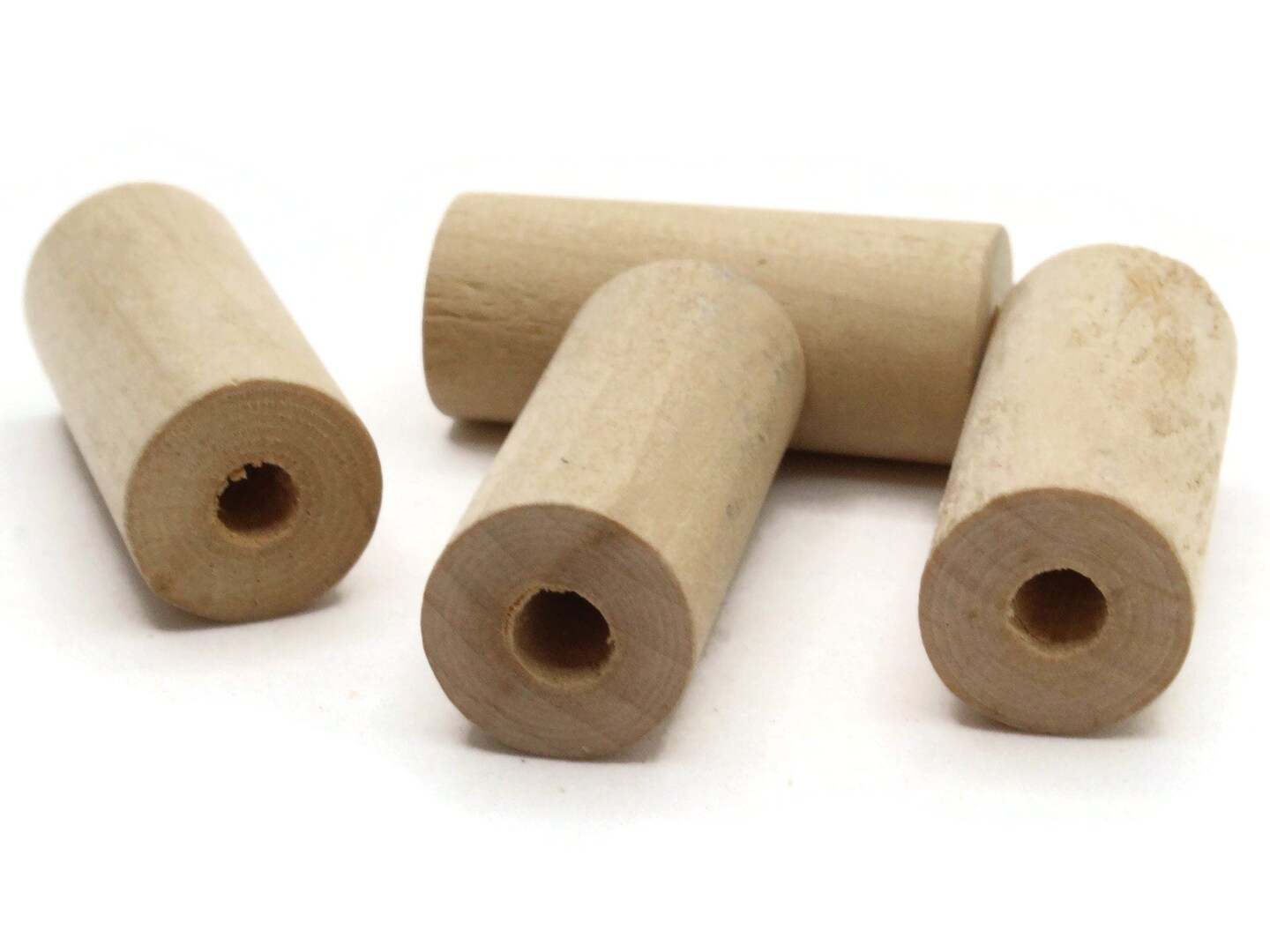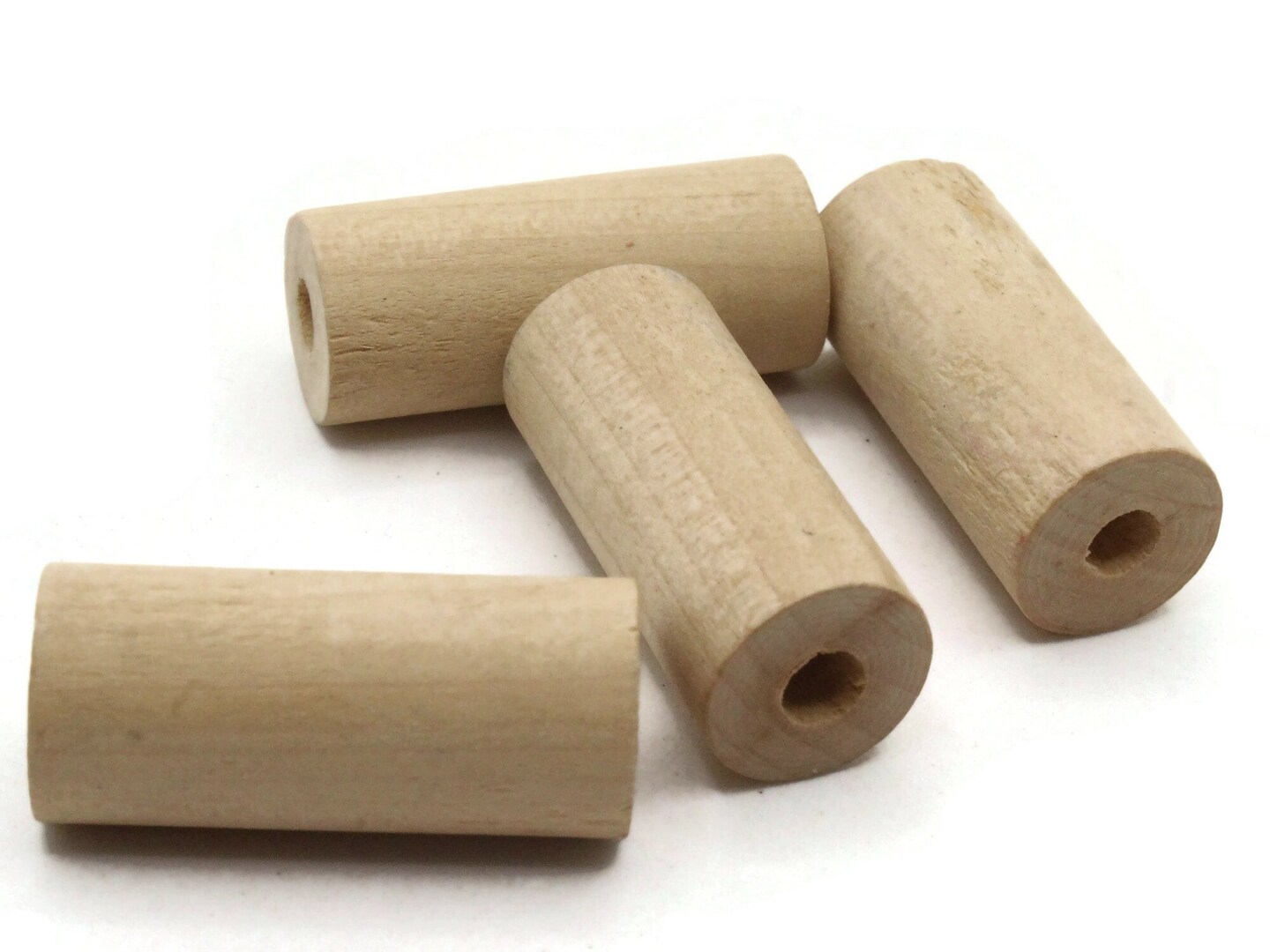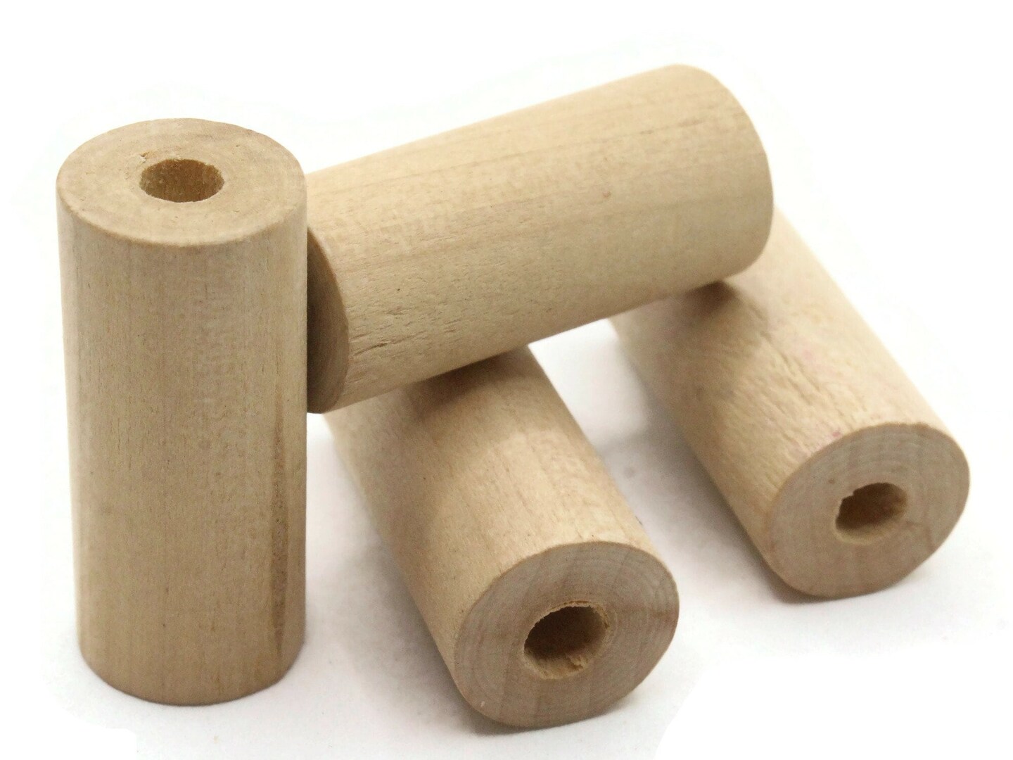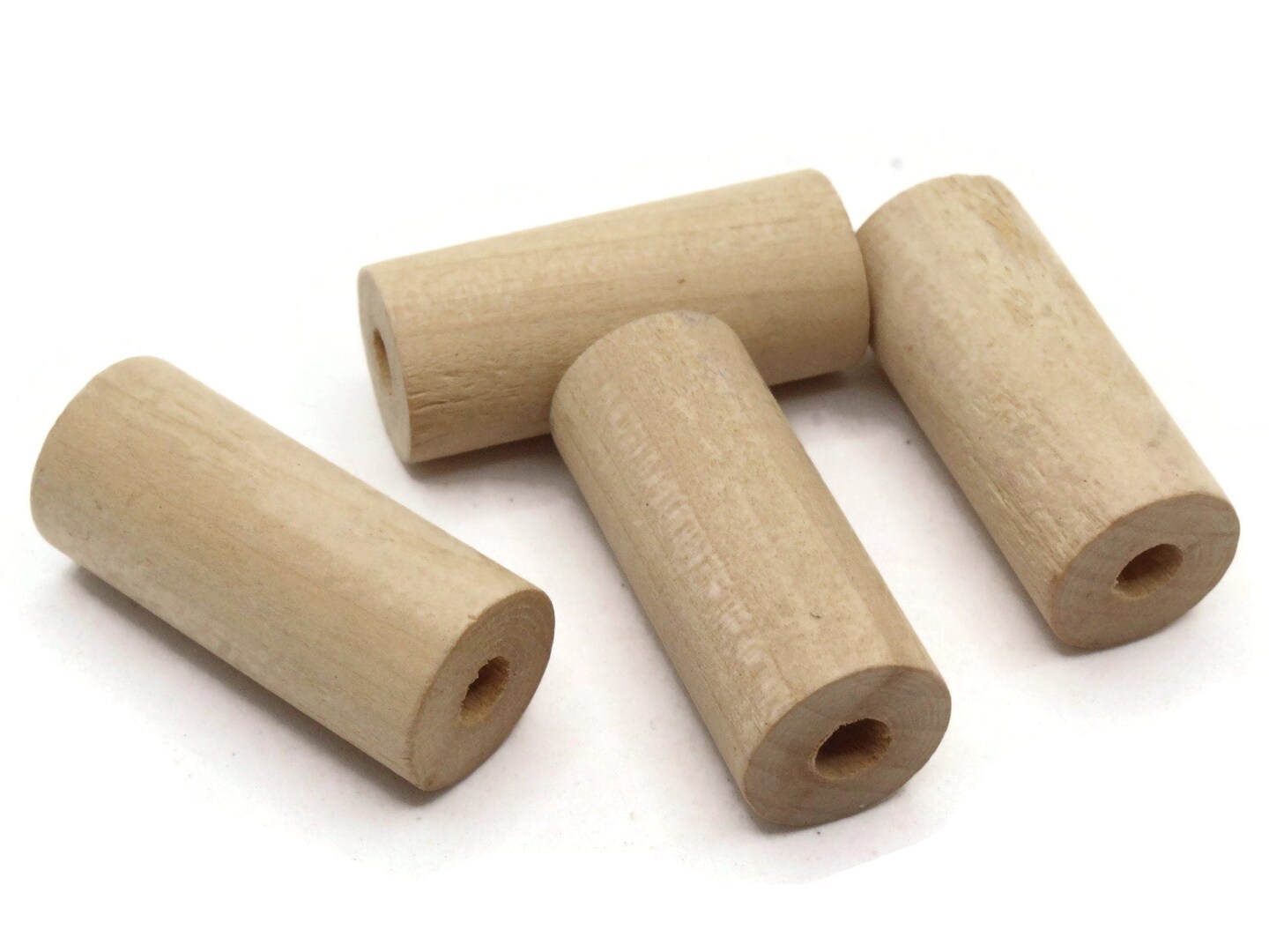 4 34mm Vintage Light Brown Wooden Tube Beads