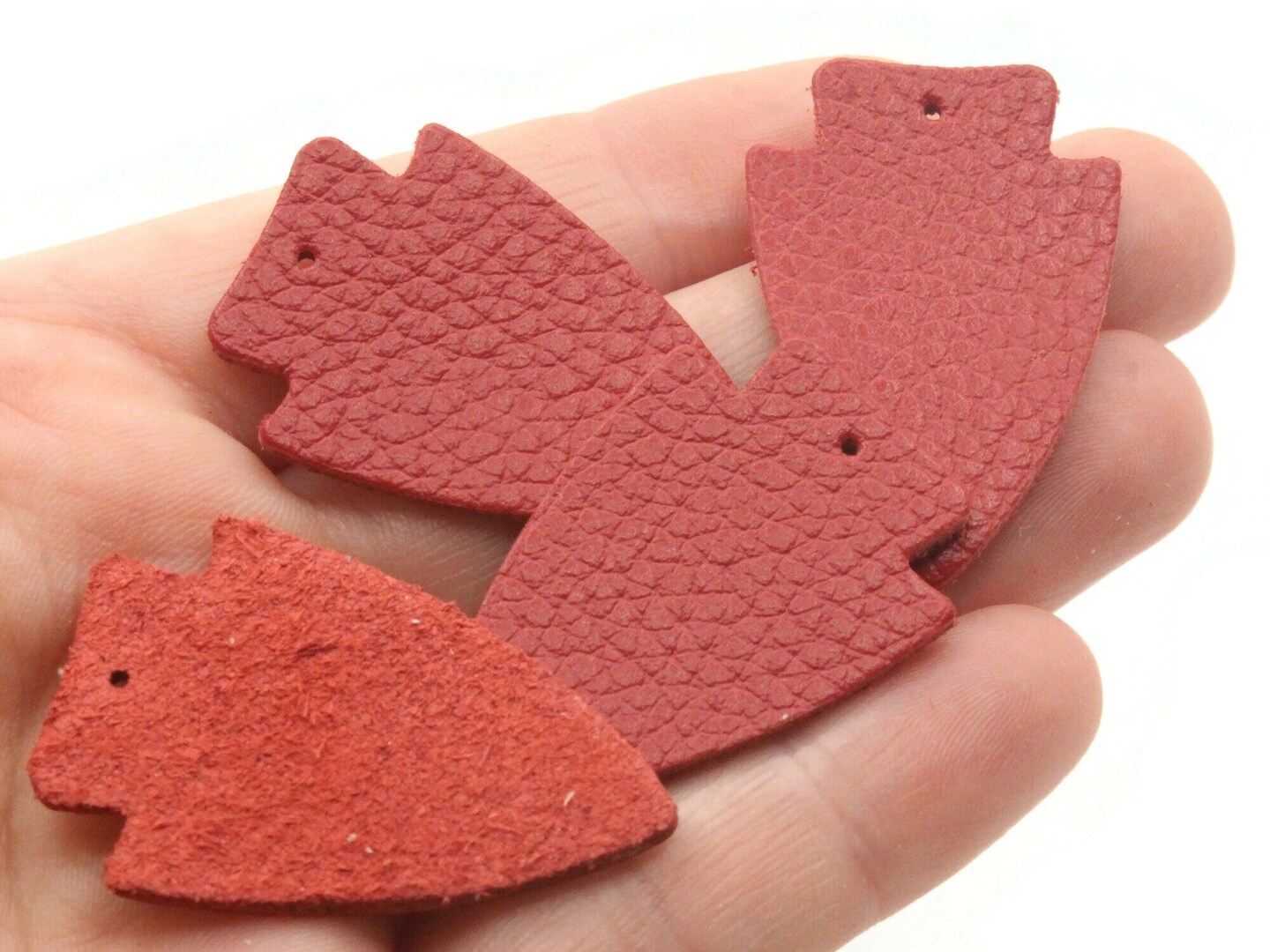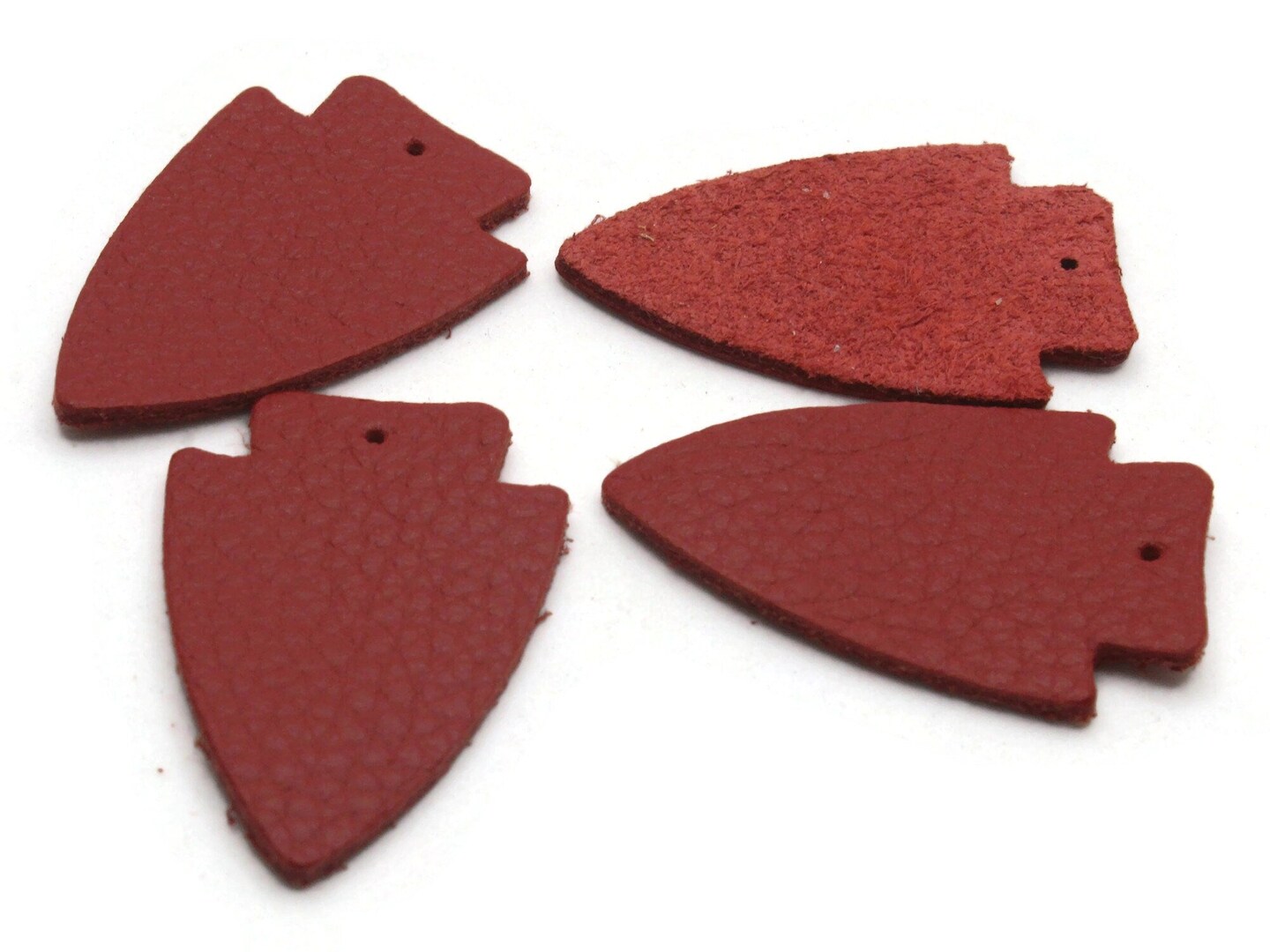 4 37mm Red Leather Arrowhead Pendants