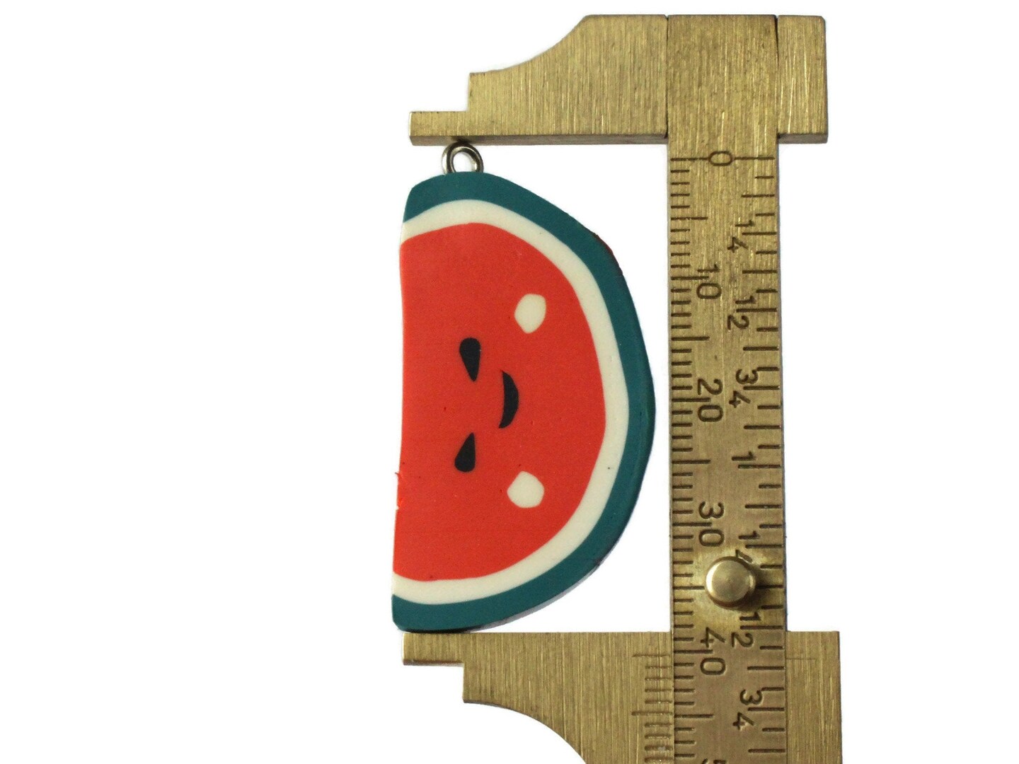 4 40mm Happy Watermelon Beads Sliced Clay Red and Green Fruit Beads
