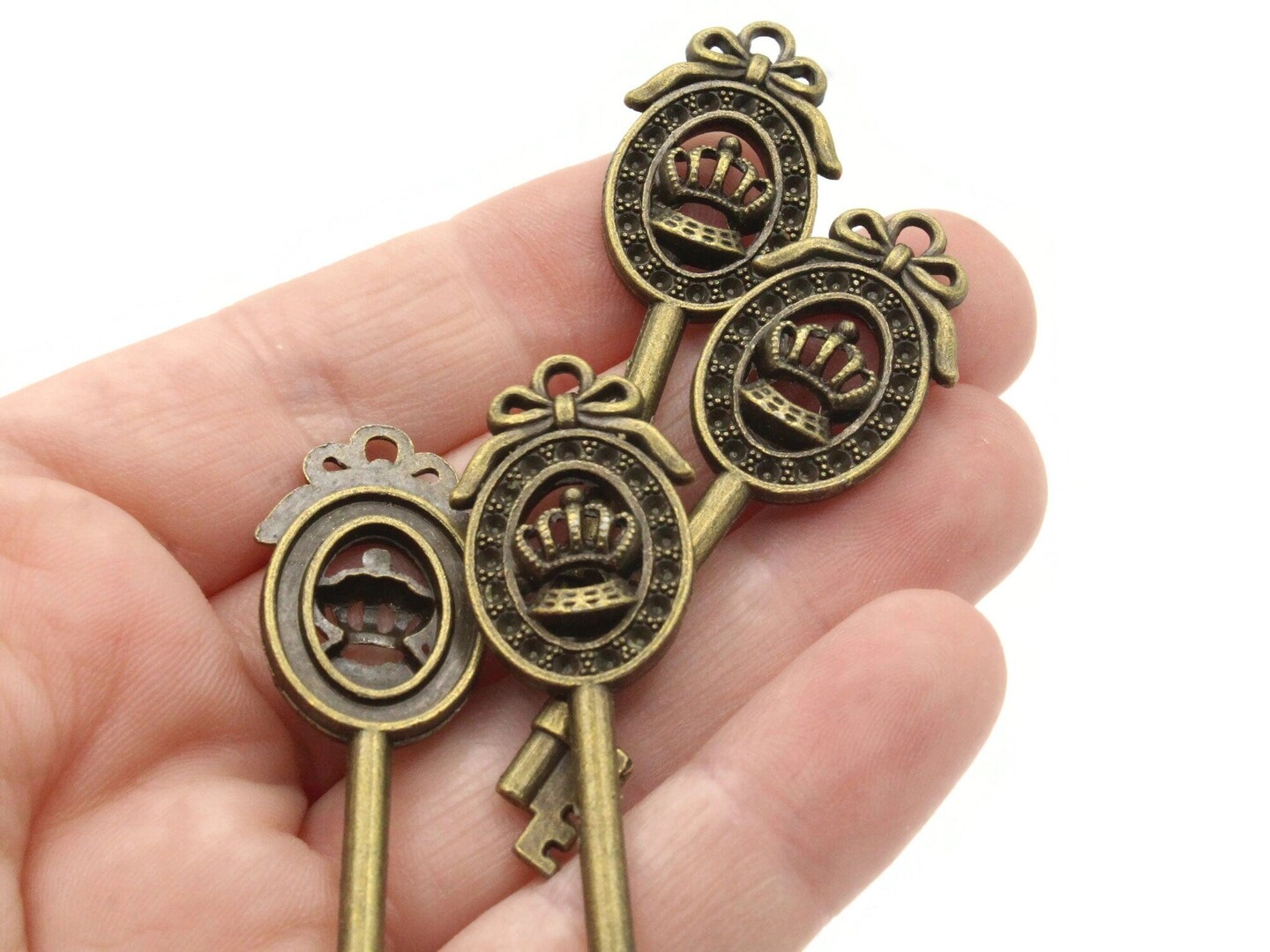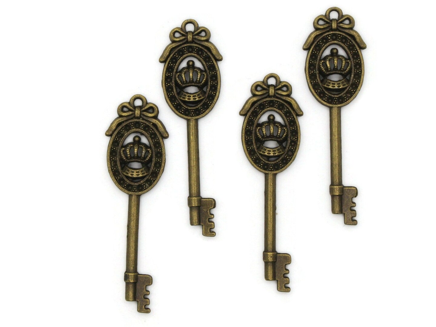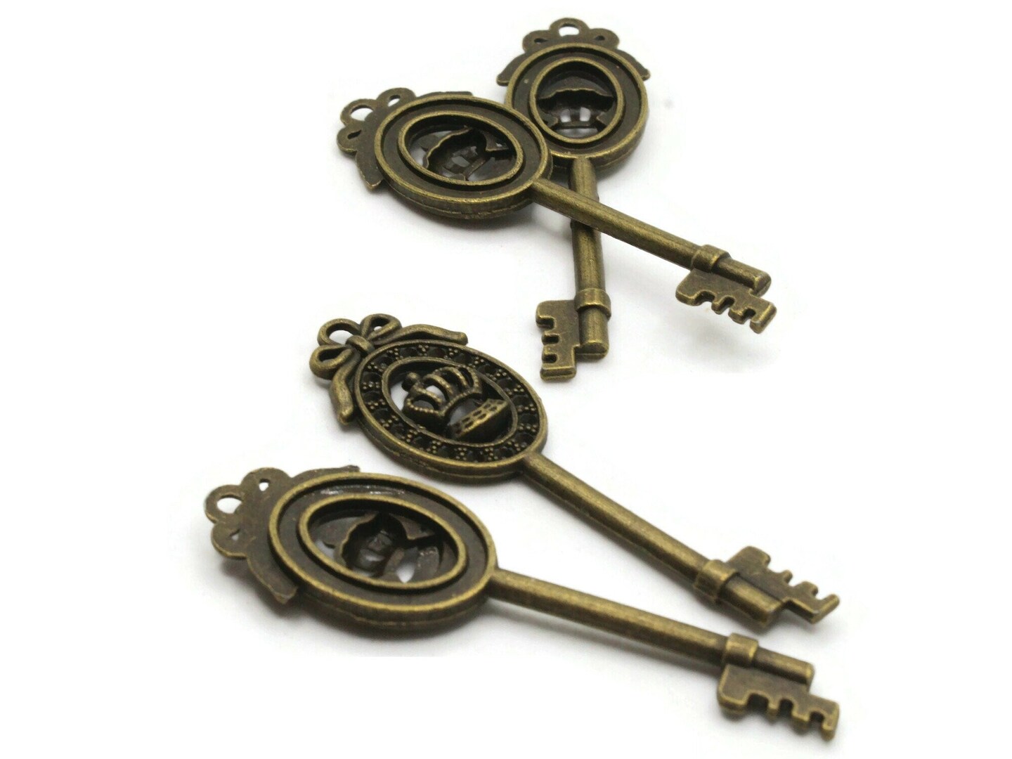 4 57mm Antique Bronze Framed Crown Metal Skeleton Key Charms