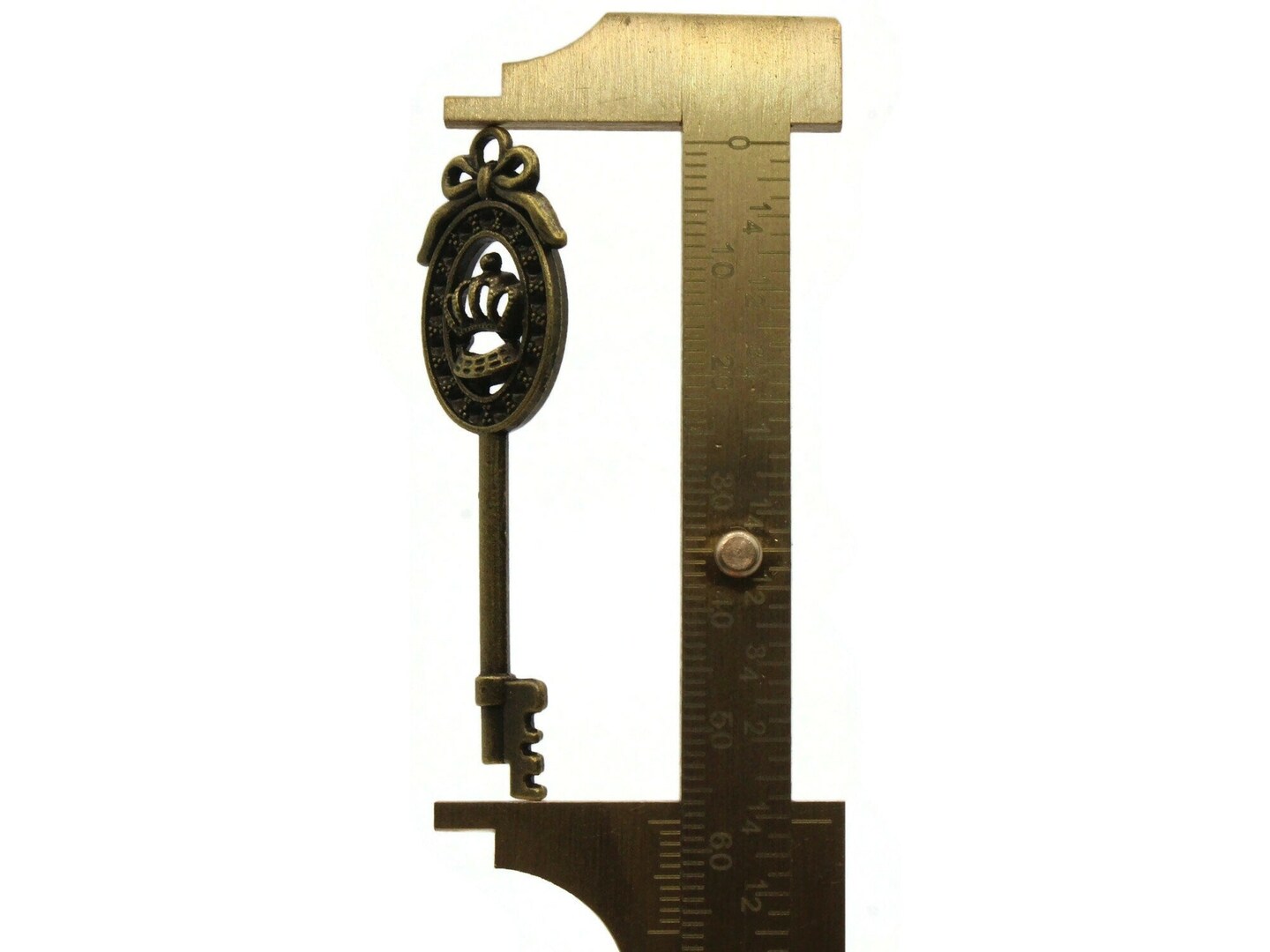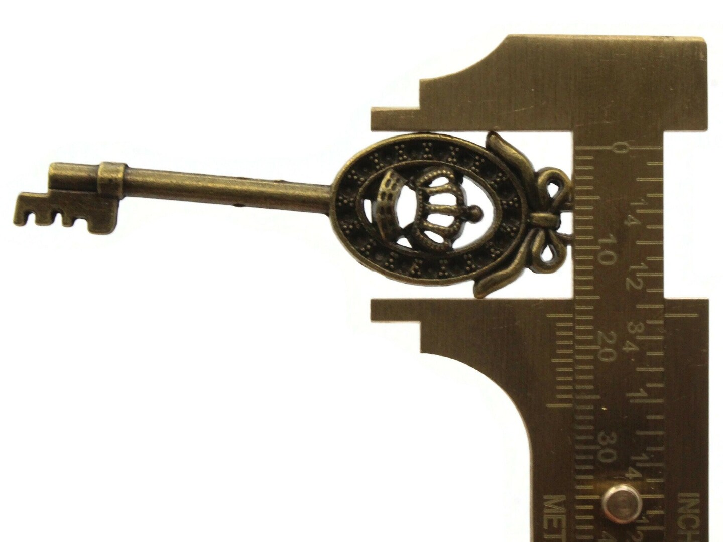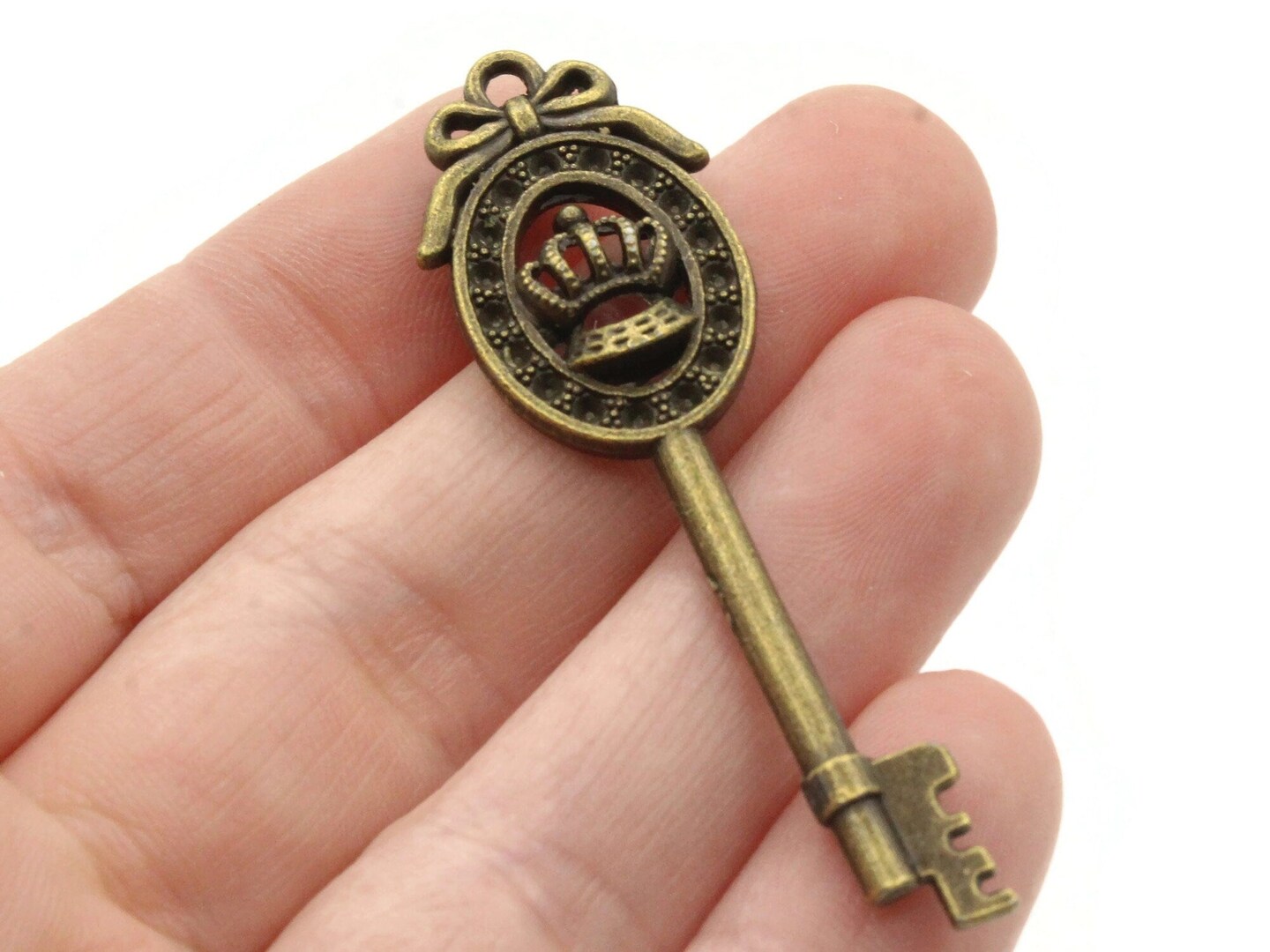 4 57mm Antique Bronze Framed Crown Metal Skeleton Key Charms
