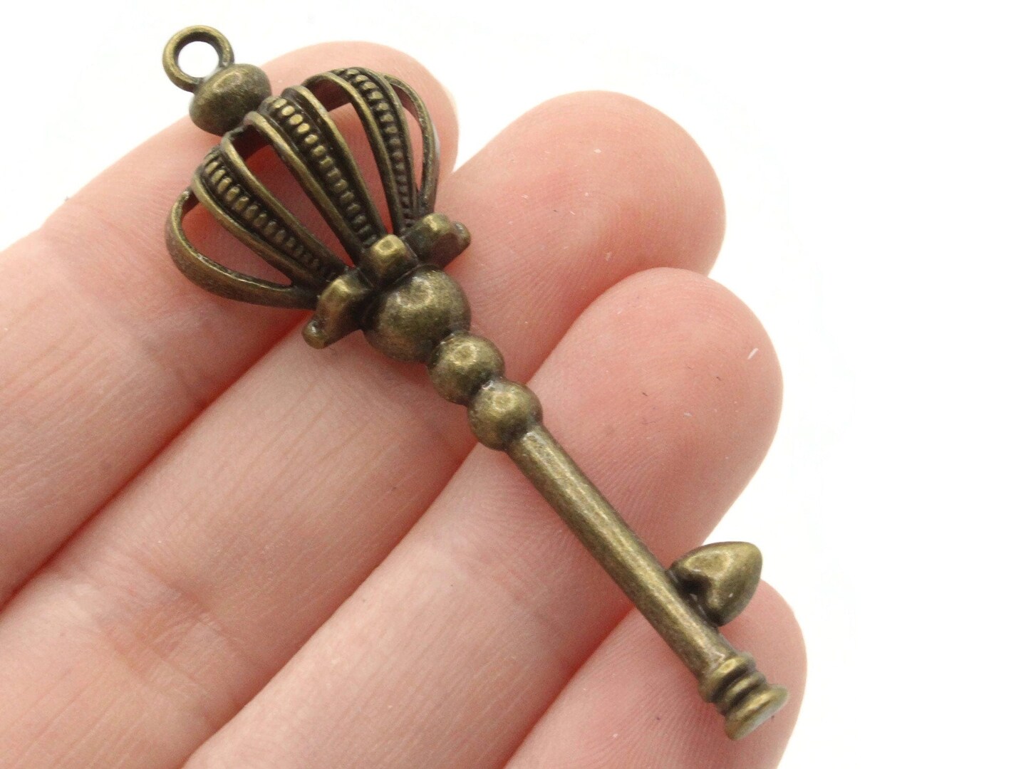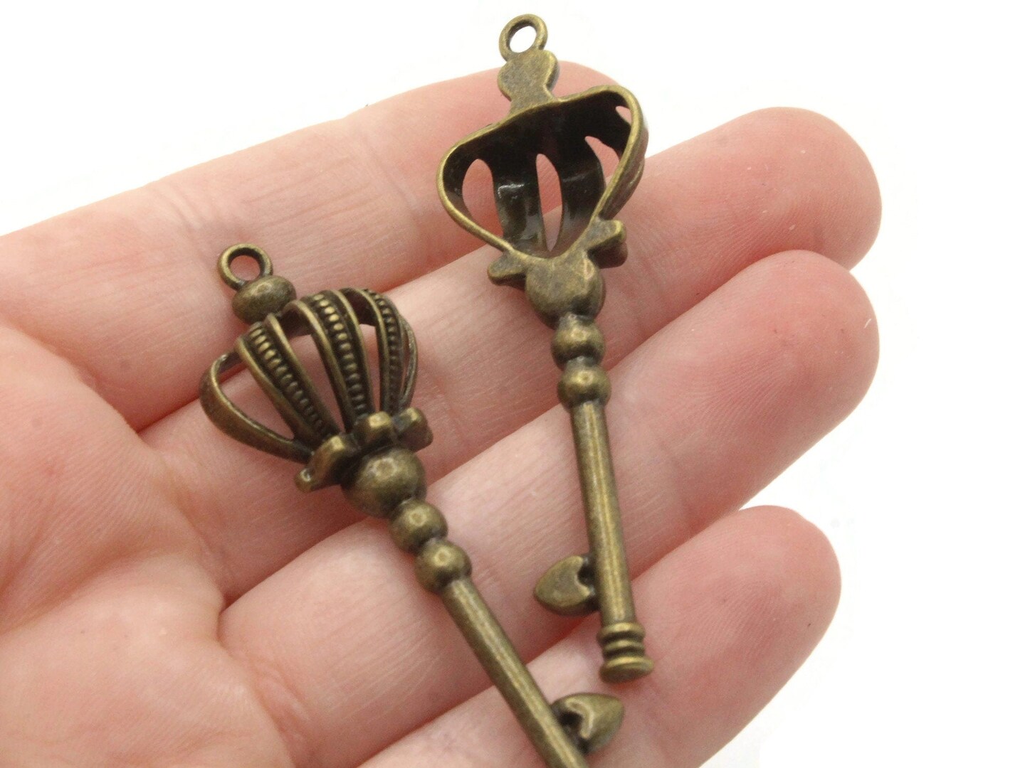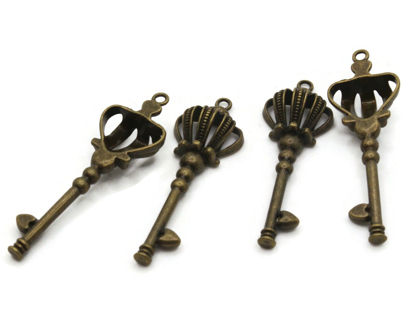 4 58mm Antique Bronze Crown Keys Metal Skeleton Key Charms