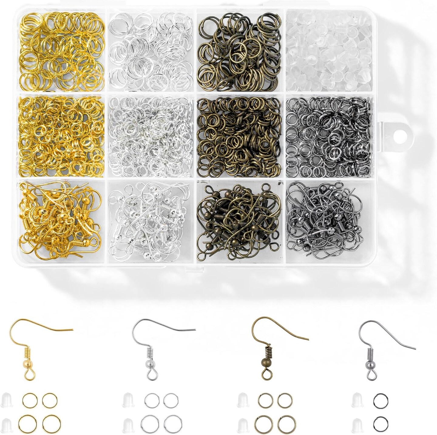 4 Colors Earring Hooks, 890 Pcs Earring Making Supplies Kit with Hypoallergenic Ear Wires Hooks, Open Jump Rings and Earring Backs for Jewelry Making Findings