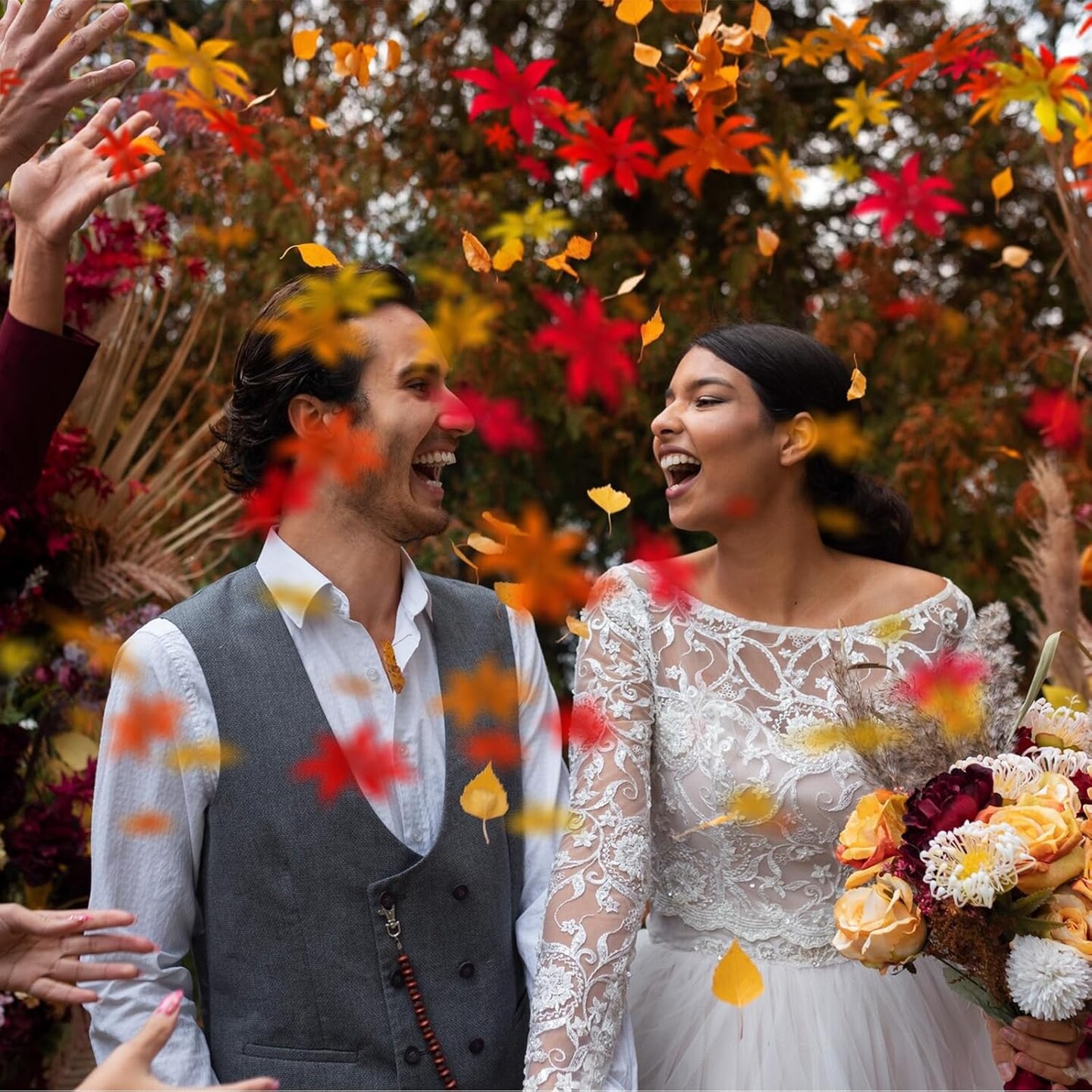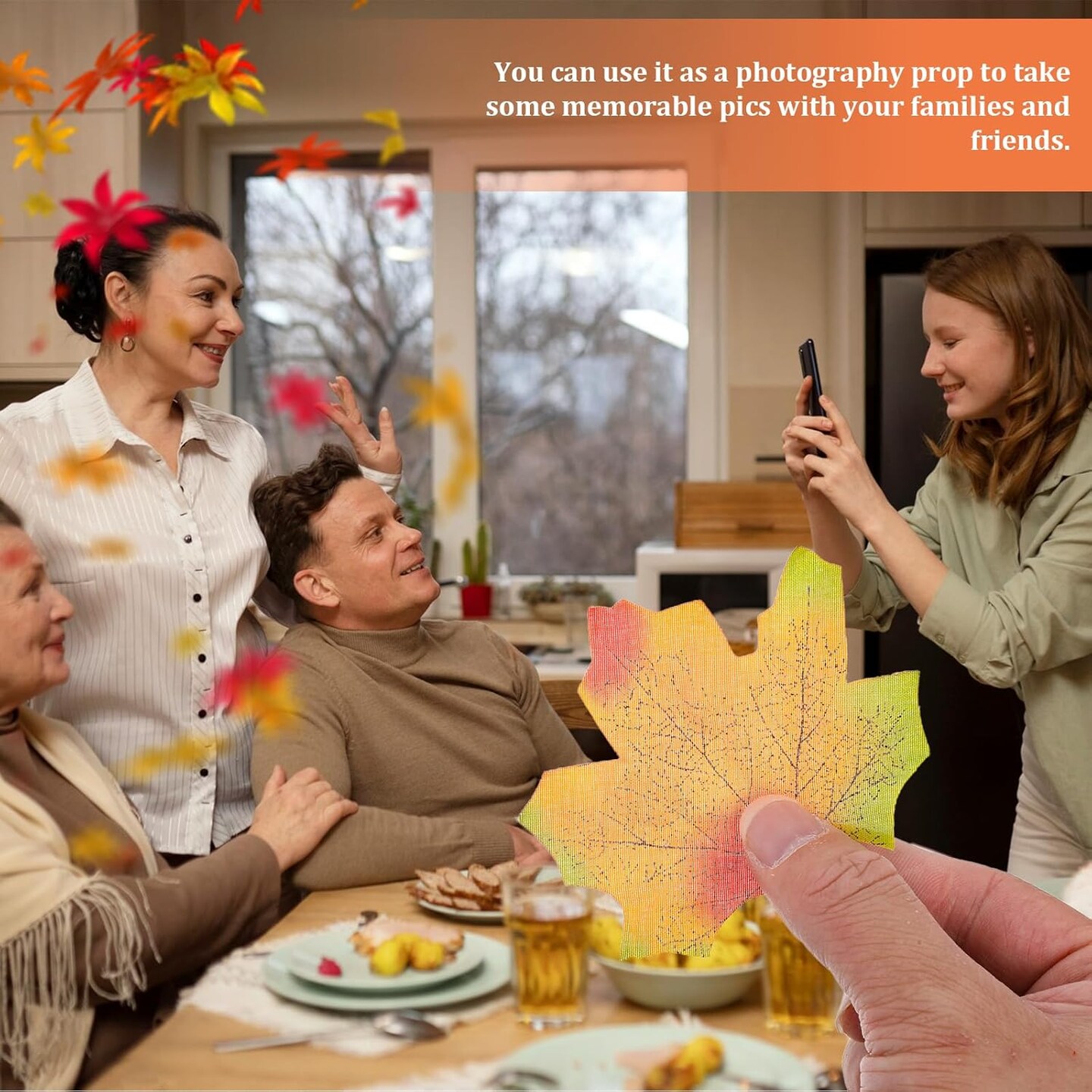 4 Colors Fake Leaves Artificial (Red, Crimson, Orange, Green) 3.15"D x 2.75"W x 0.1"H