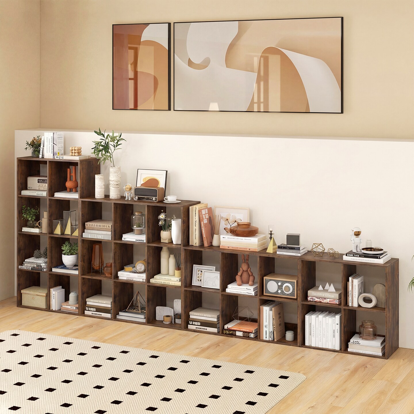 4 Cube Storage Shelf with Back Panel Home Organizer Bookcase
