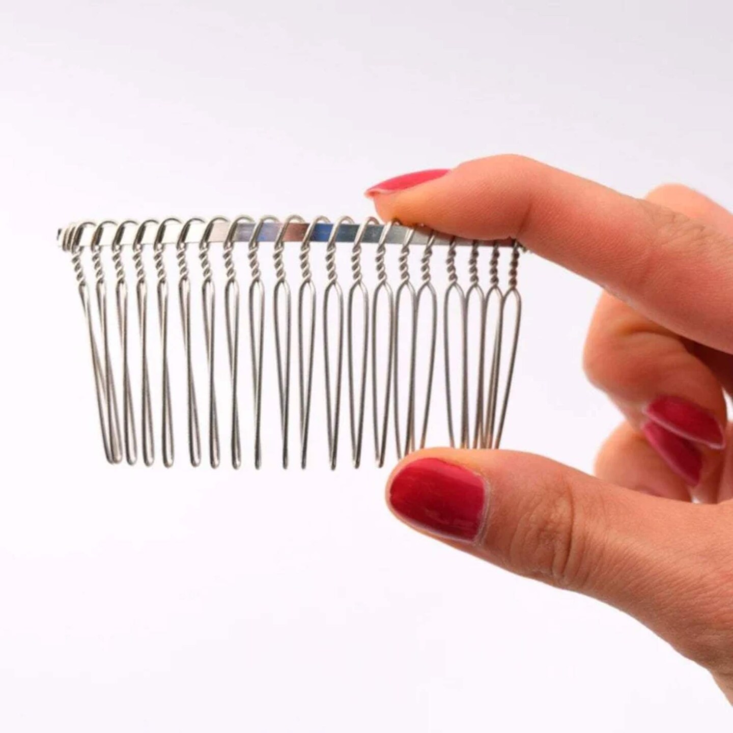 4" Curved Metal Veil Combs Silver Wire Set of 2