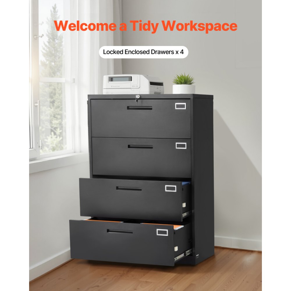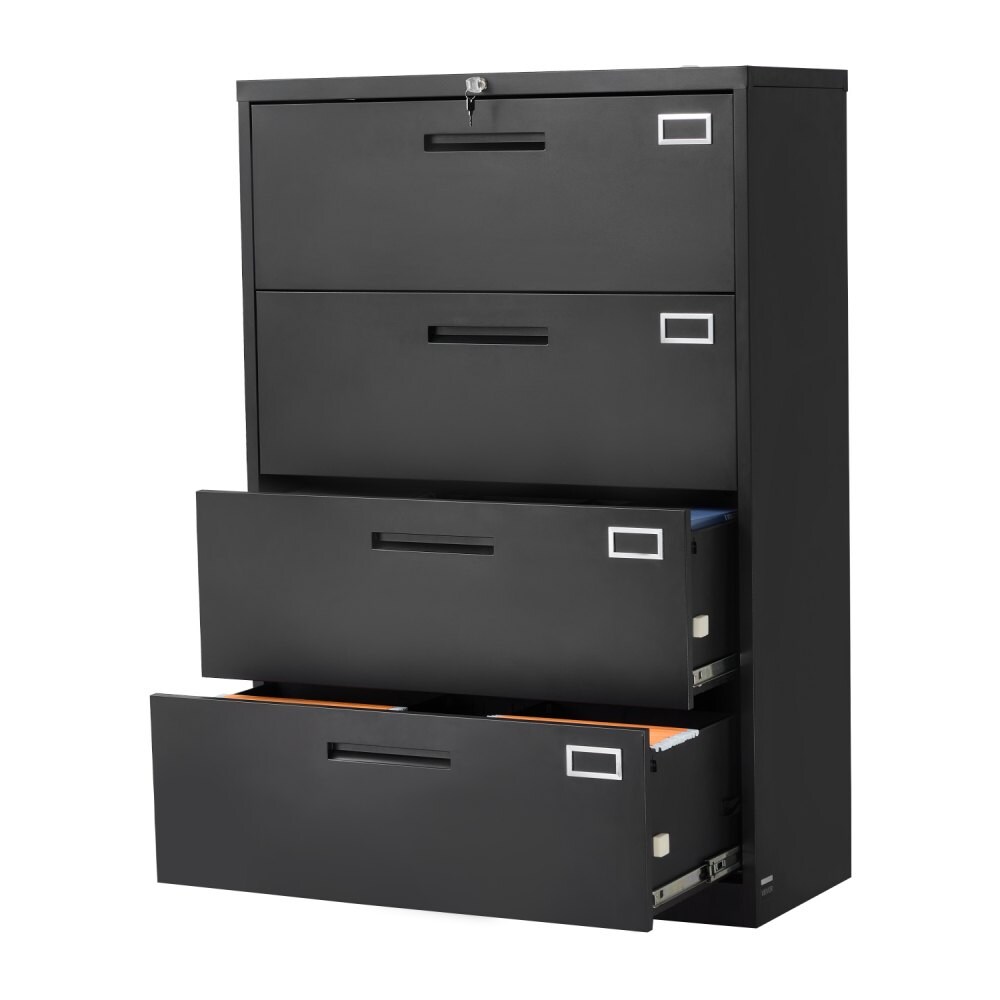 4 Drawer Black Metal File Cabinet with Lock and Adjustable Hanging Rods for Office Storage