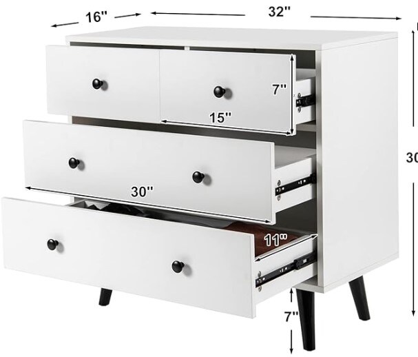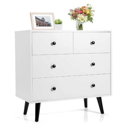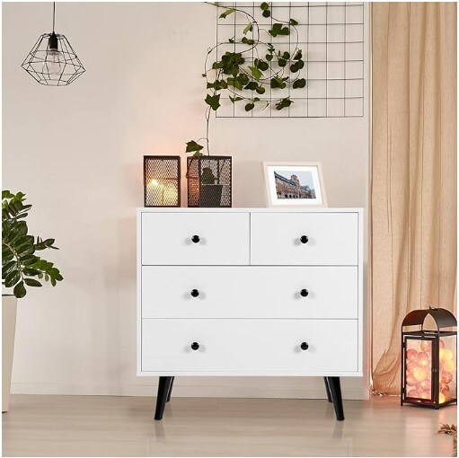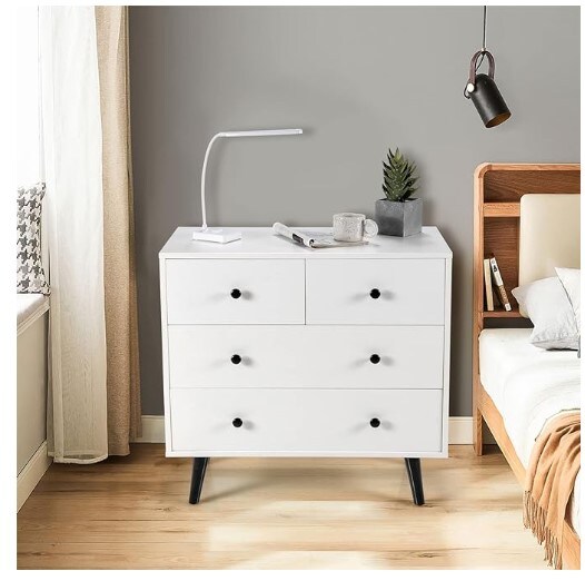 4 Drawer Dresser, Wooden Chest of Drawers, Freestanding Storage Cabinet with Legs and Metal Handles, Contemporary Storage Drawer for Bedroom, Living Room, Cloakroom, and Nursery Room (White)
