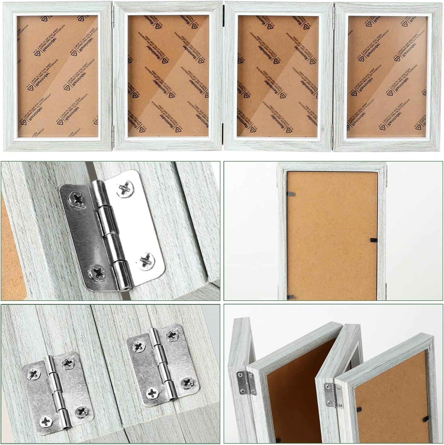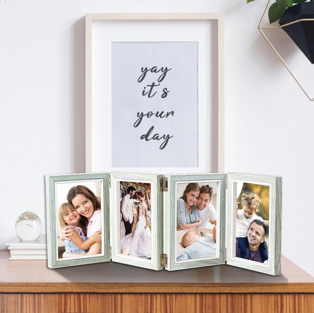 4 Folding 5x7 Inch Hinged Picture Frame High Definition Natural Wood Picture Frame(Grey)6.9"L x 5.8"W