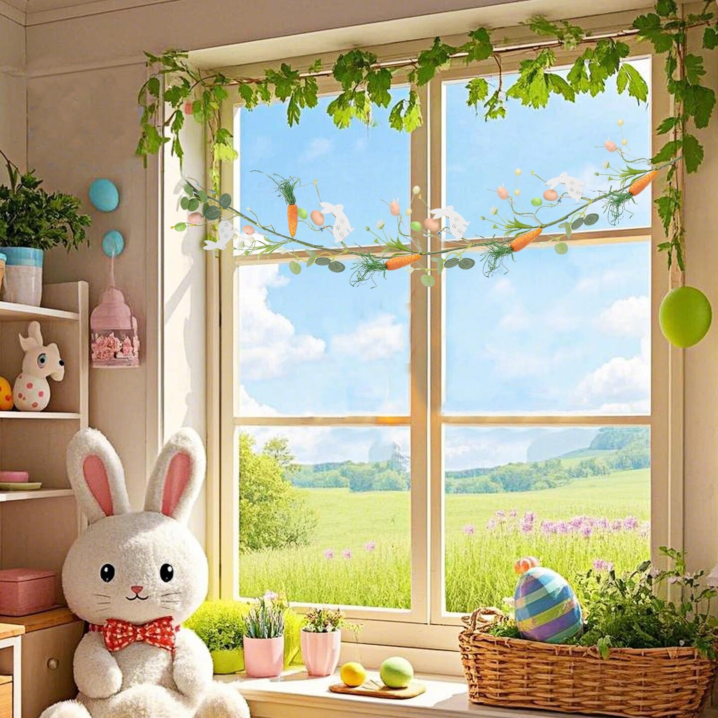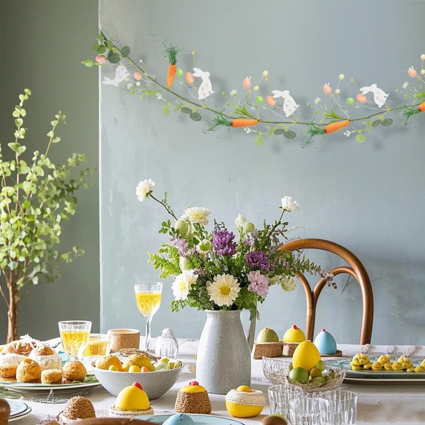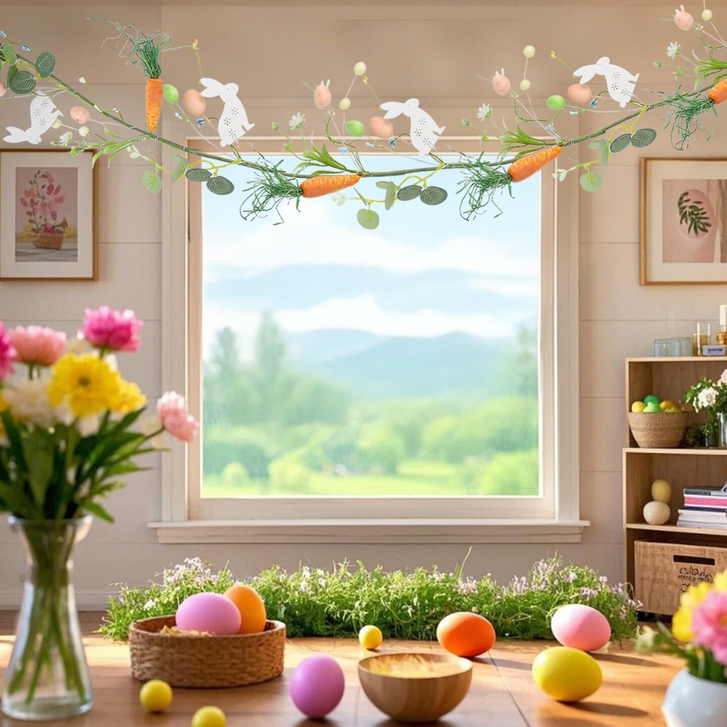 4 FT Easter Garland-Bunny & Carrot Garland Decorations for Mantle, Spring Artificial Garland with Easter Pastel Eggs for Indoor Home Fireplace Table Centerpiece Party Décor