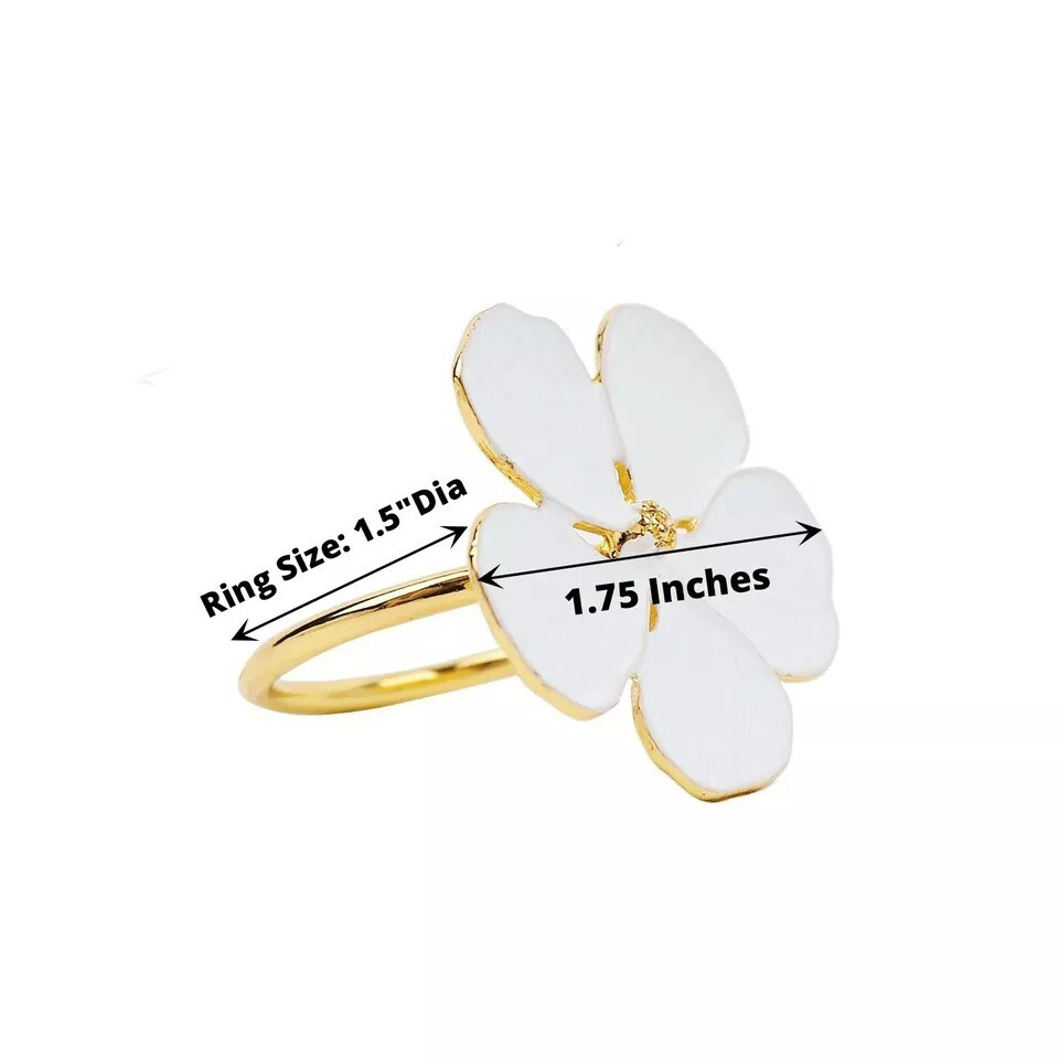 4 Gold White Metallic Napkin Rings Flower Design Party Events Home Decorations
