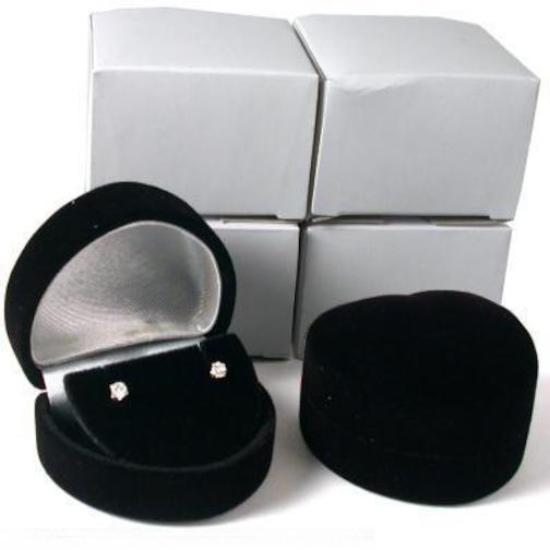 4 Heart Earring Gift Boxes Black Showcase Display