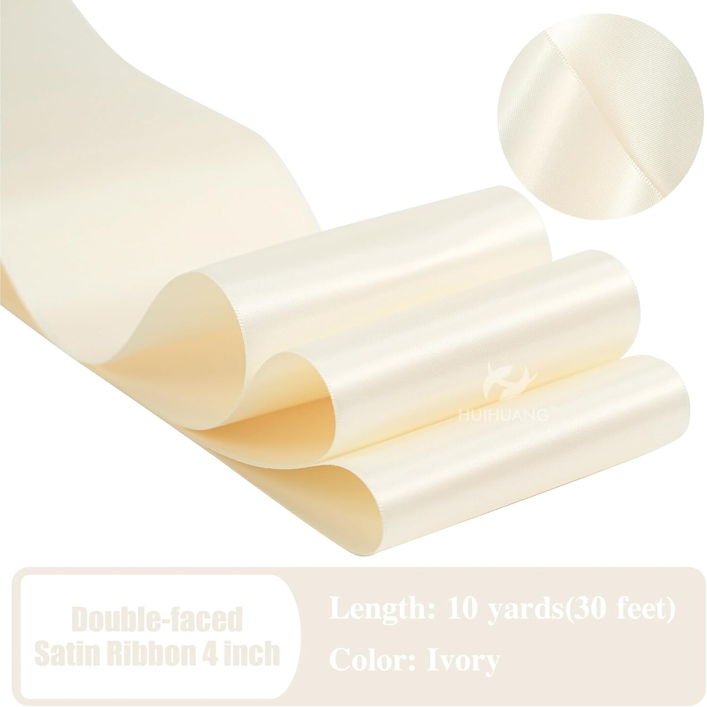 4 inch Wide Satin Ribbon Ivory Ribbon Solid Color (10 Yards/Roll)