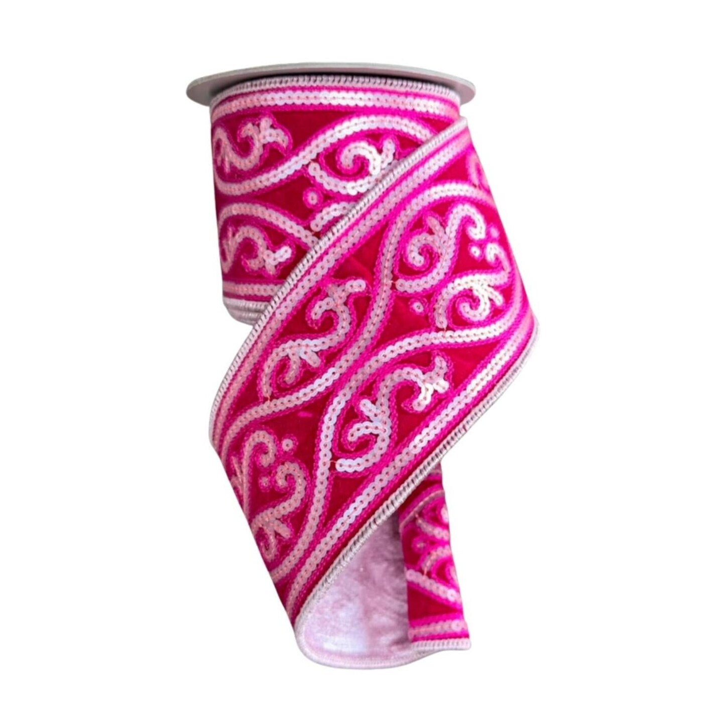 4" Morris Tapestry Ribbon: Light Pink (5 Yards)