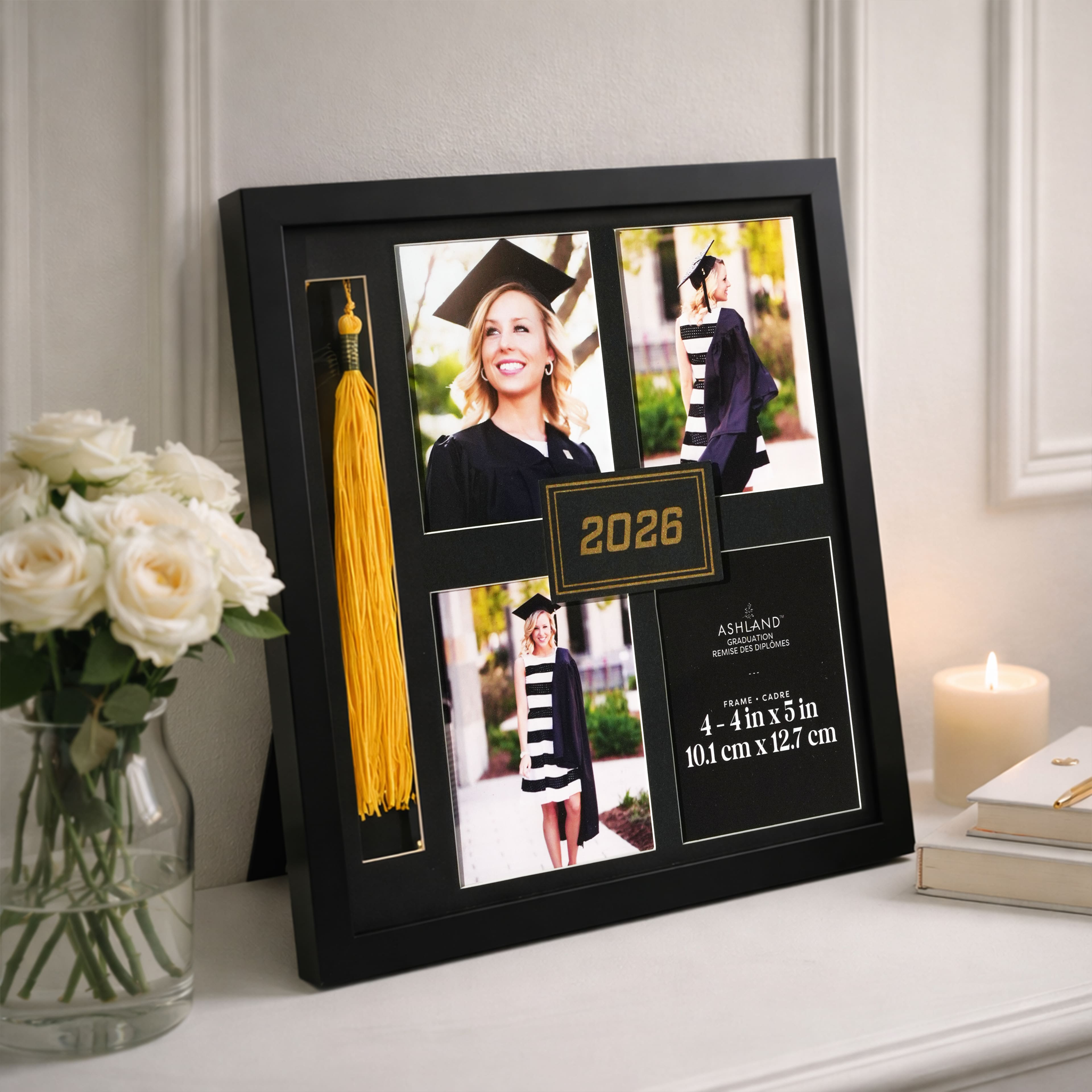 4 Opening 4" x 5" Black 2026 Tabletop Frame with Tassel Slot, Graduation by Ashland®
