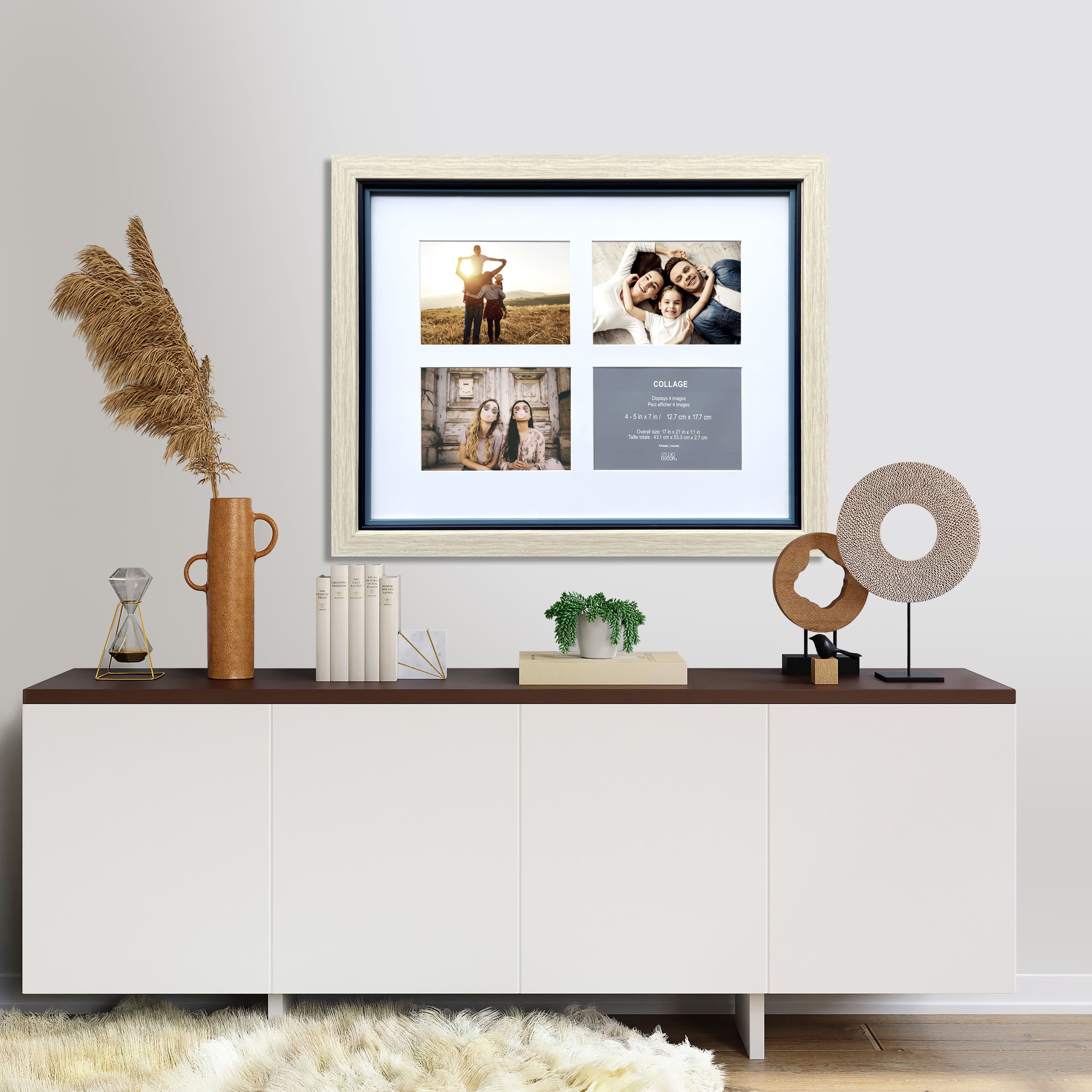 4 Opening 5" x 7" Natural Tan & Navy Collage Frame with Mat by Studio Décor®