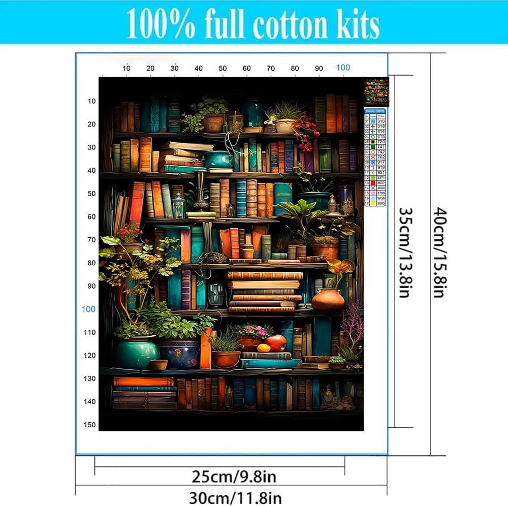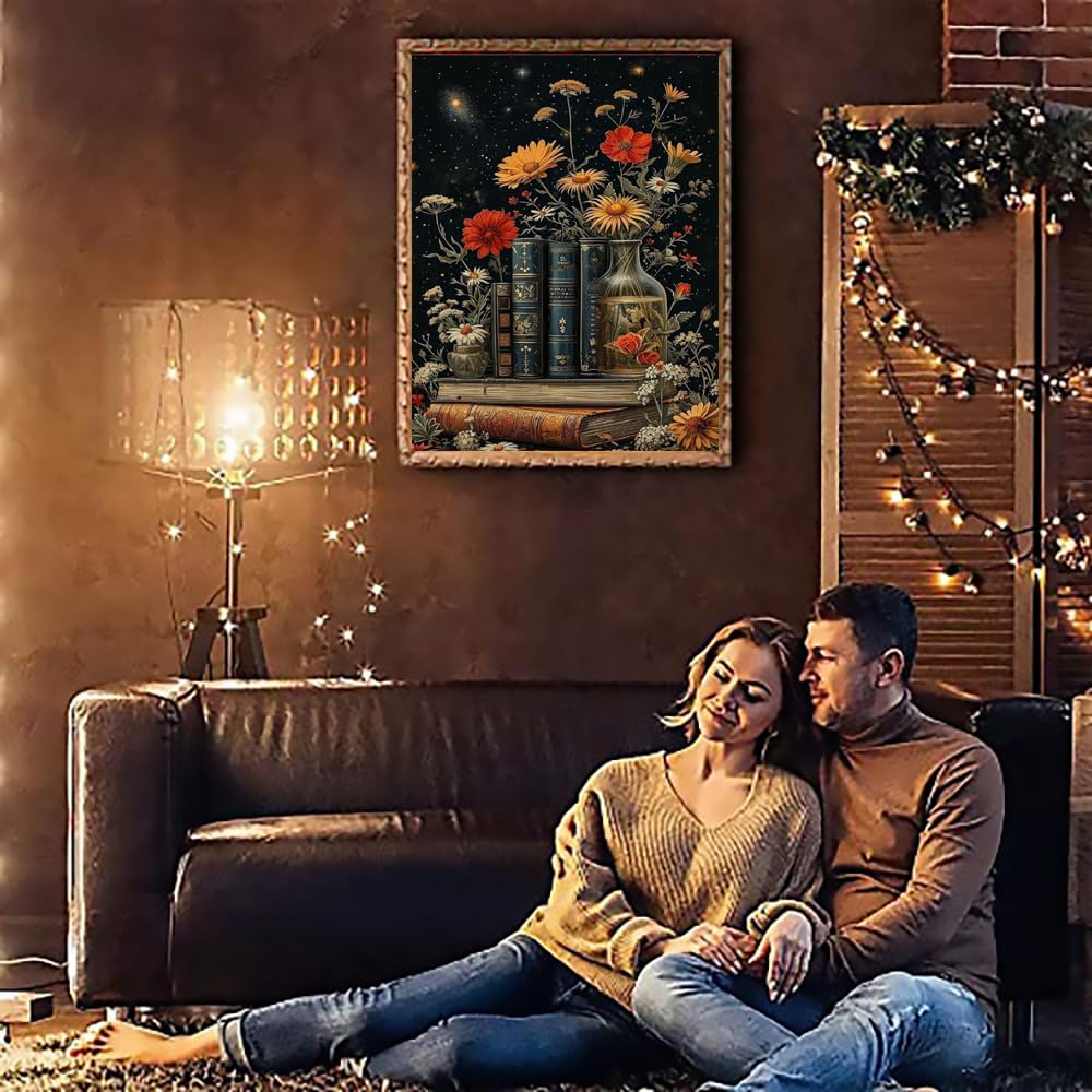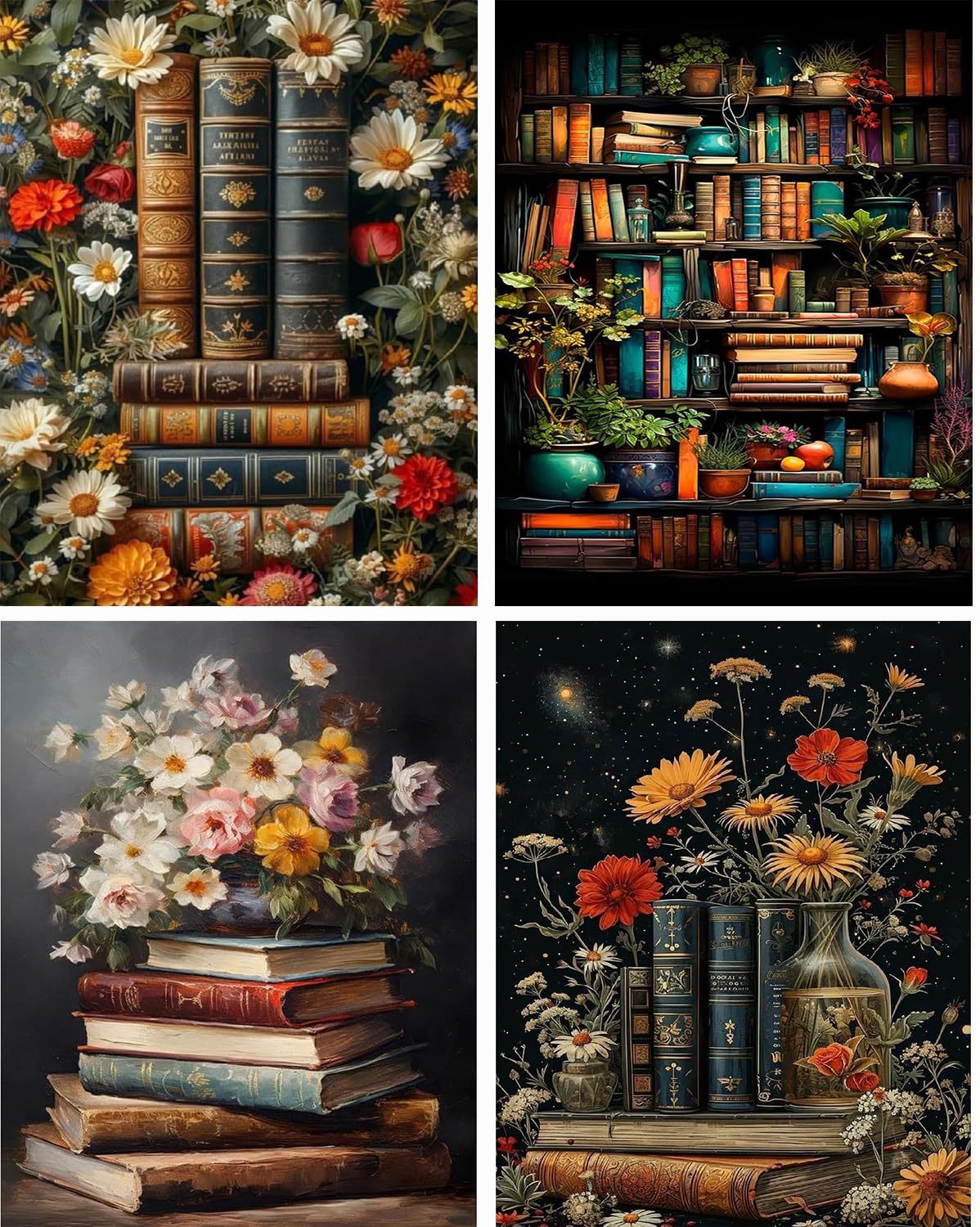 4 Pack Book Flower Stamped Cross Stitch Kits for Adults - Embroidery Kits for Beginners Adults,11 CT Patterns Dimensions Counted Cross Stitch Kits for Arts Craft Kits12x16 inch