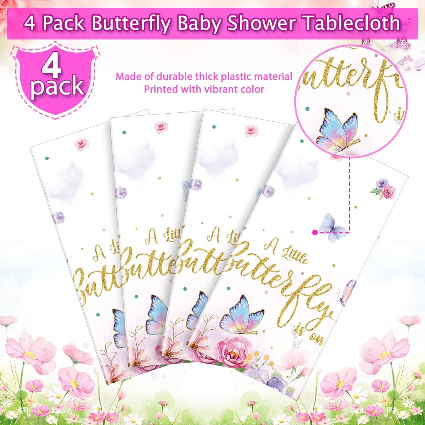 4 Pack Butterfly Baby Shower Tablecloth