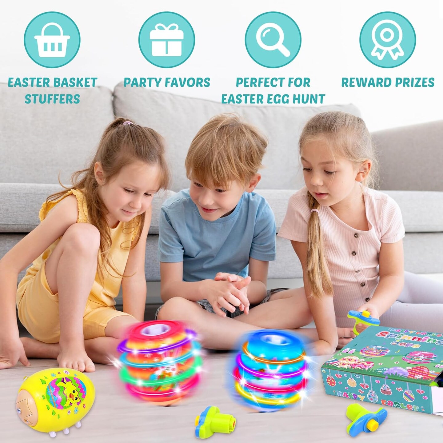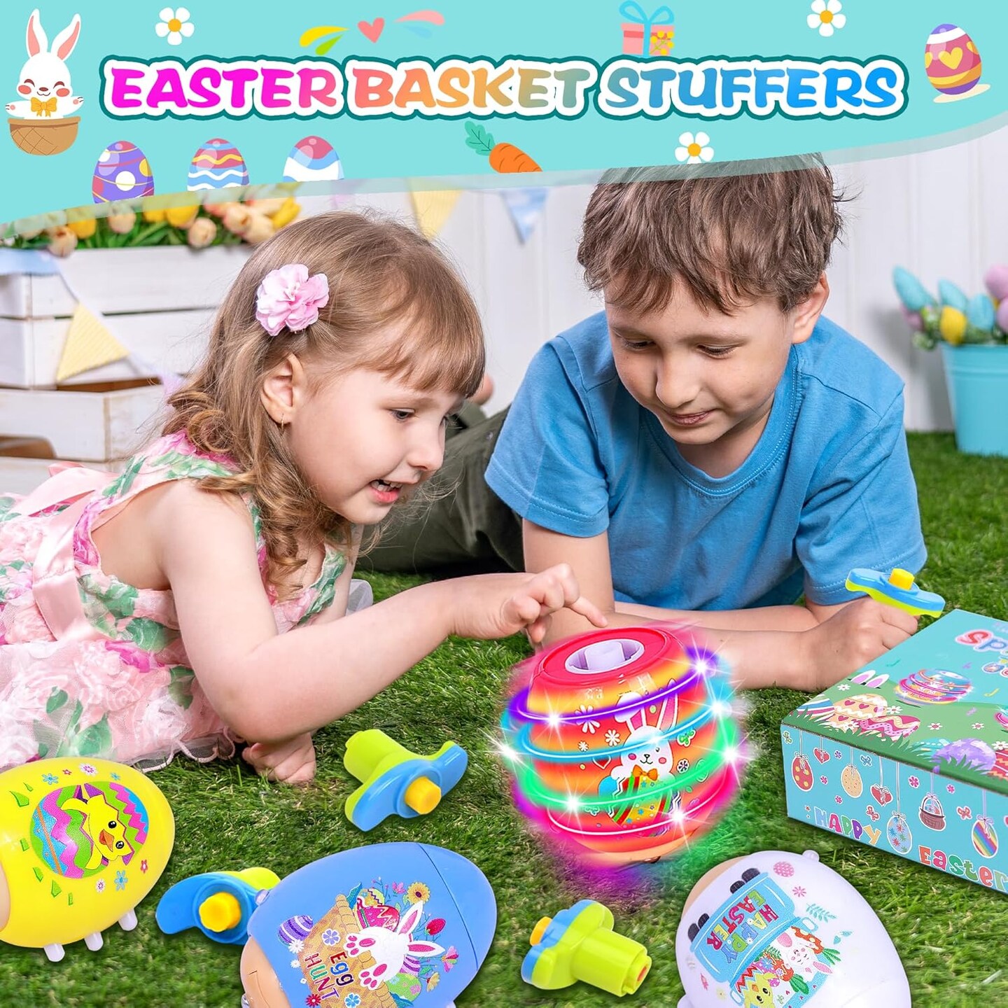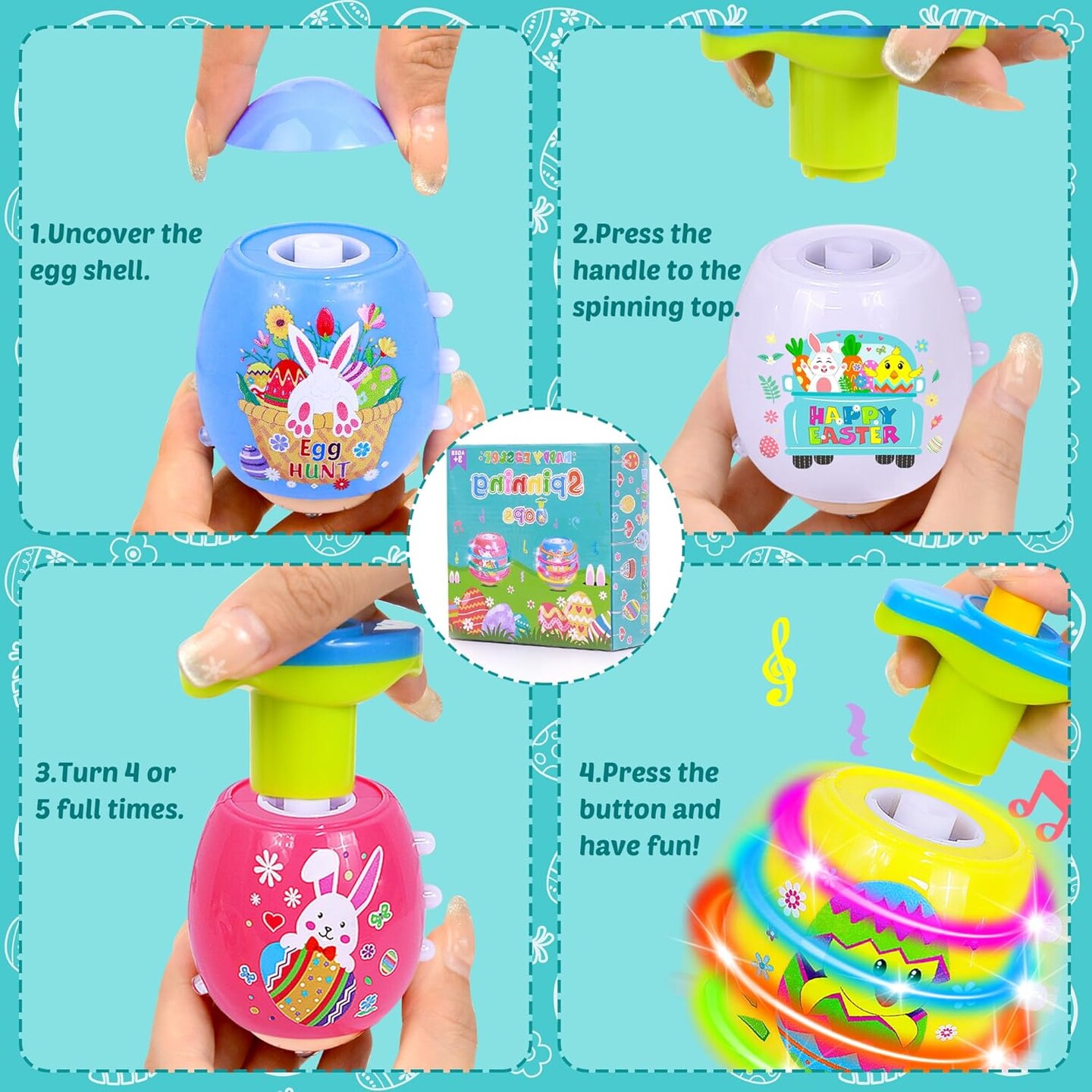 4 Pack Easter Egg Light Up Spinning Singing Tops with Flash, Easter Basket Stuffers